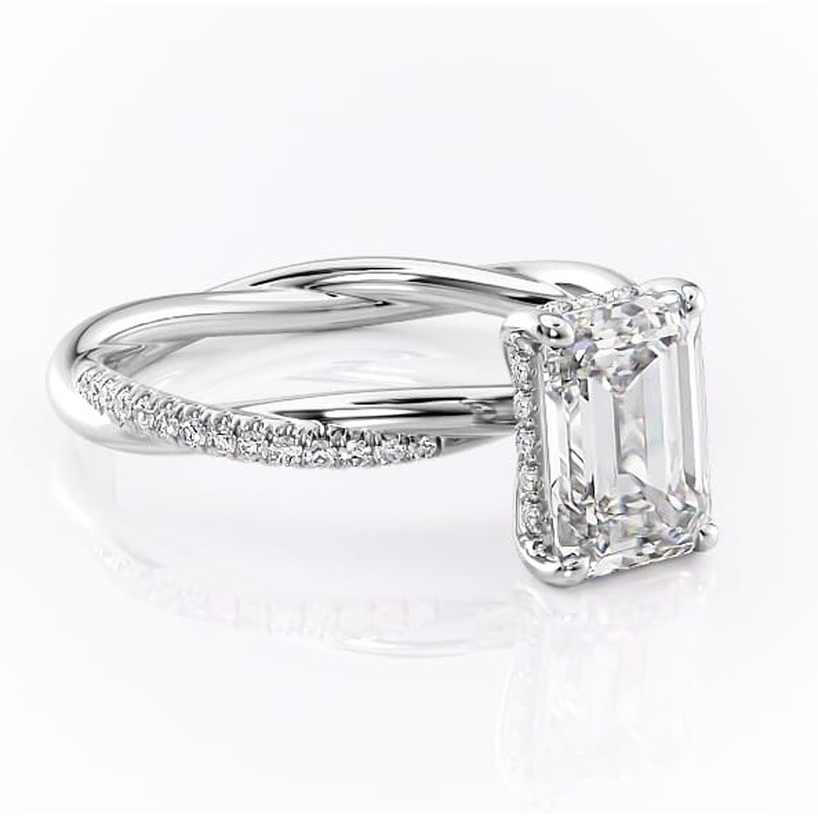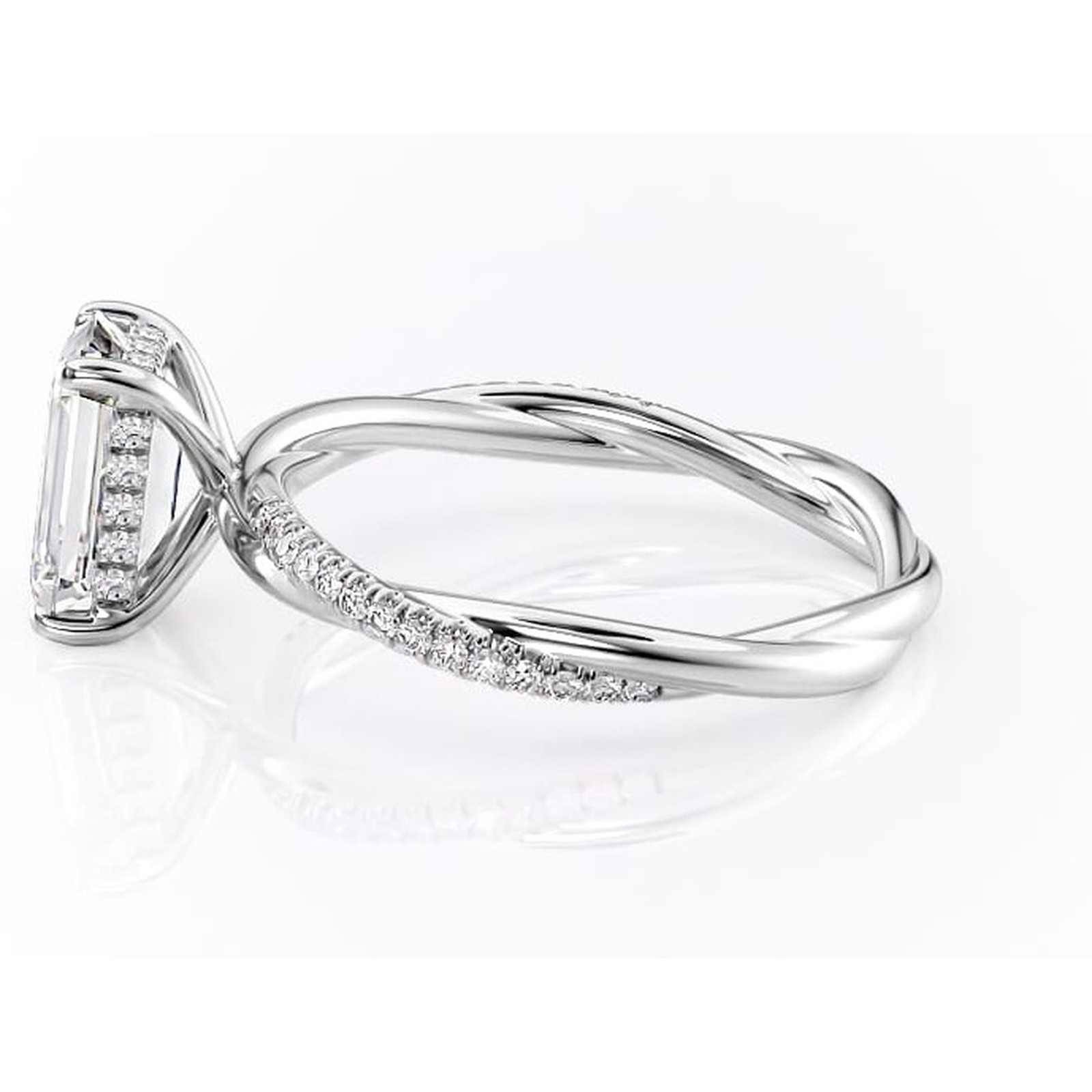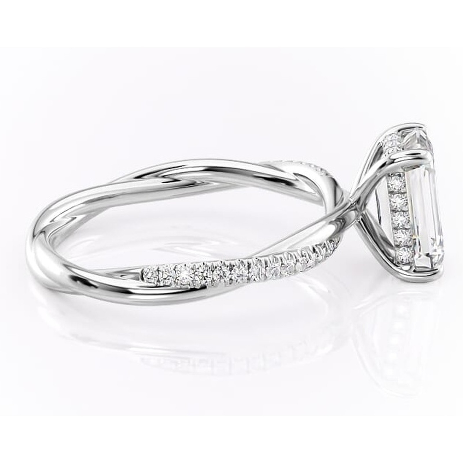 Inel de logodnă Sorrel din aur Alb 14kt cu moissanite tăietură smarald – Montură pavé rafinată pentru profil înalt | Personalizează și configurează gratuit online