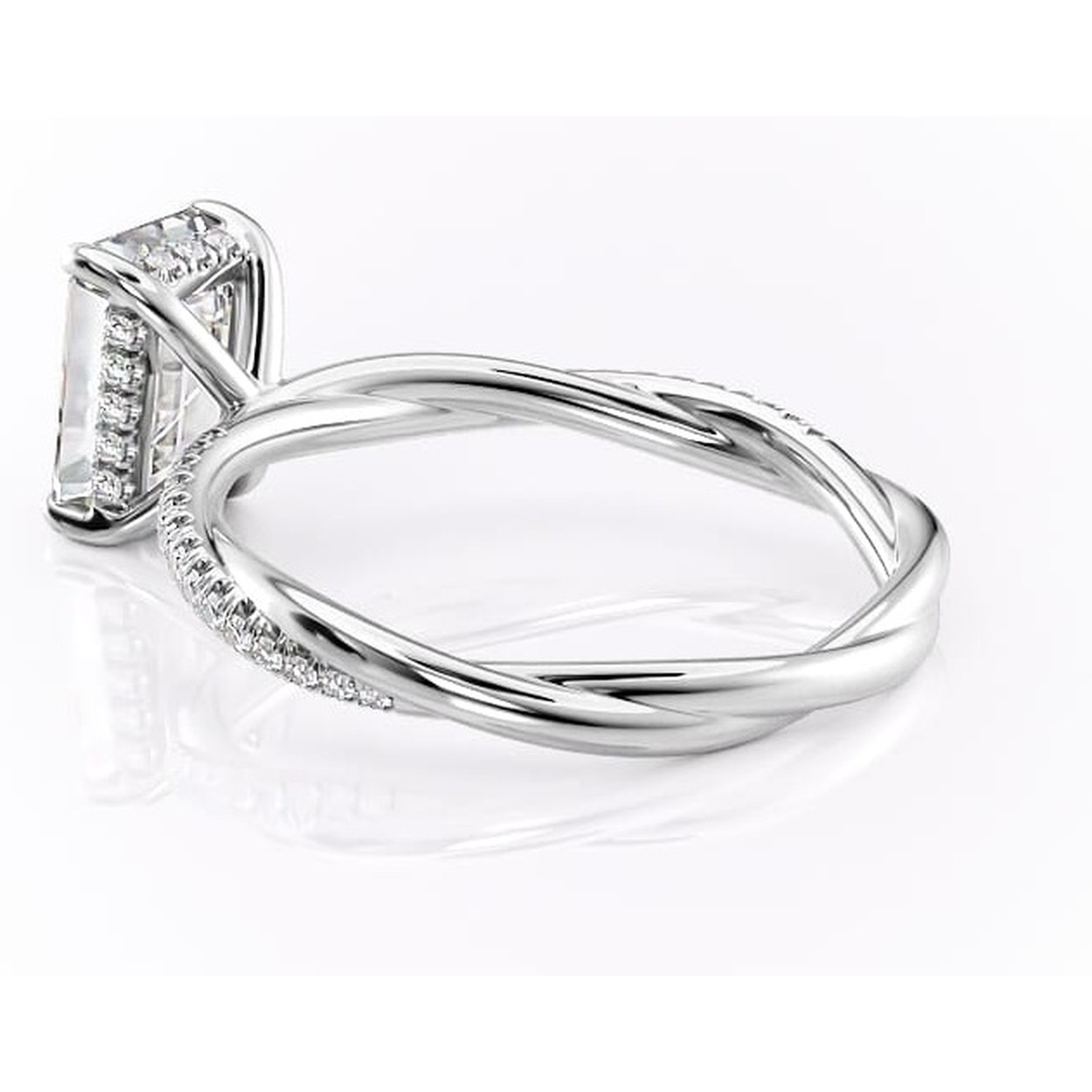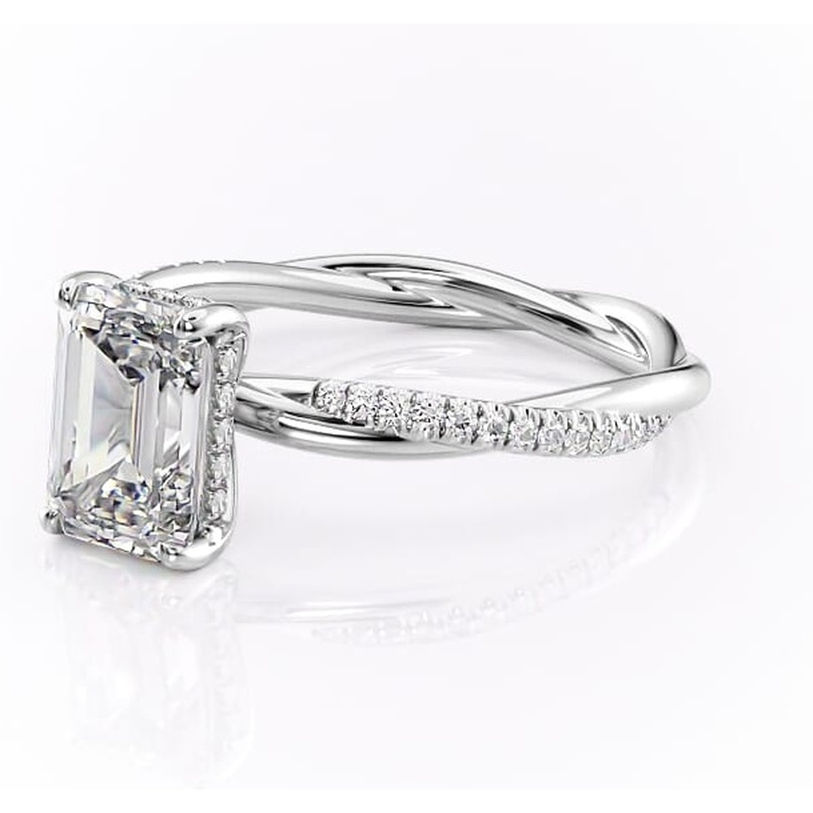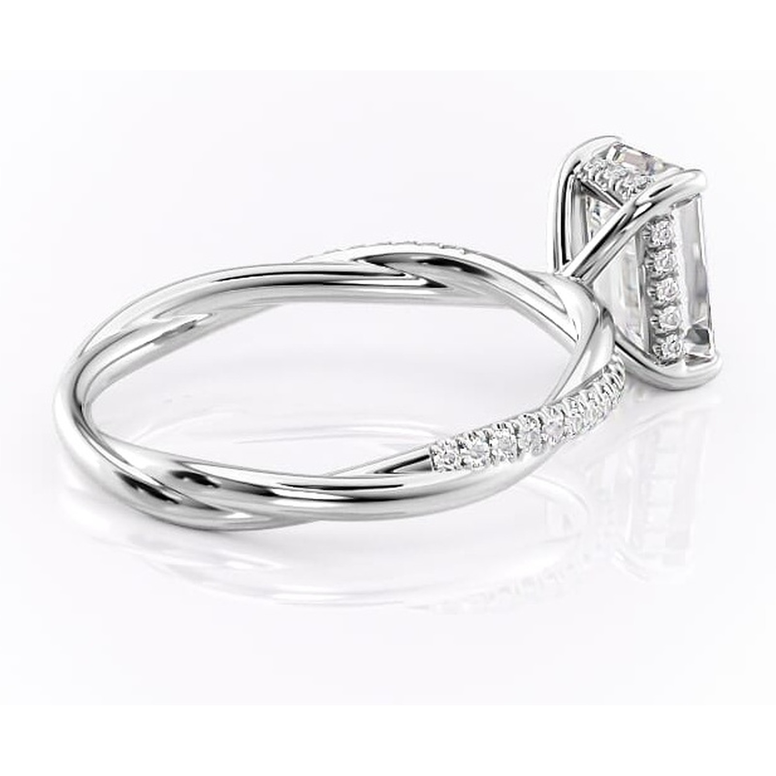 Inel de logodnă Sorrel din aur Alb 14kt cu moissanite tăietură smarald – Montură pavé rafinată pentru profil înalt | Personalizează și configurează gratuit online