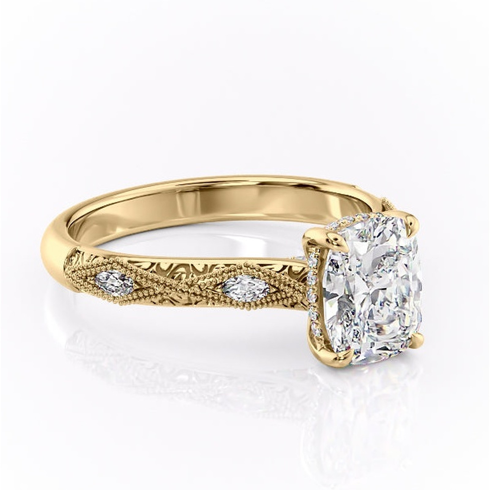 Inel de logodnă Vespera din aur Galben 14kt cu moissanite tăietură asscher – Pietre laterale rafinată pentru profil înalt | Personalizează și configurează gratuit online
