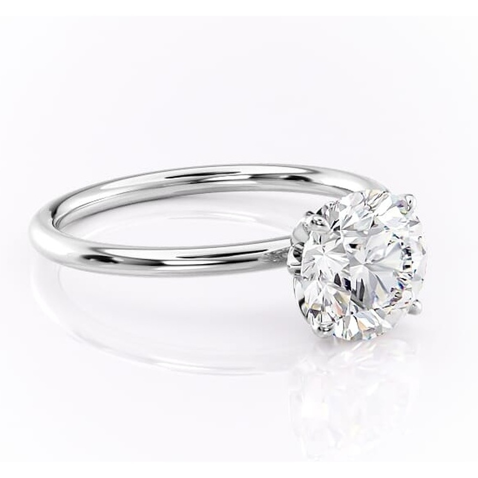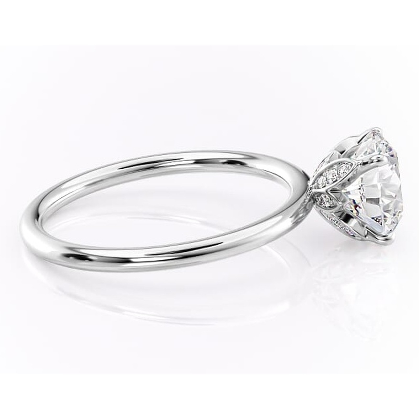 Inel de logodnă Emerald din aur Alb 14kt cu moissanite tăietură rotundă – Solitar rafinată pentru profil înalt | Personalizează și configurează gratuit online