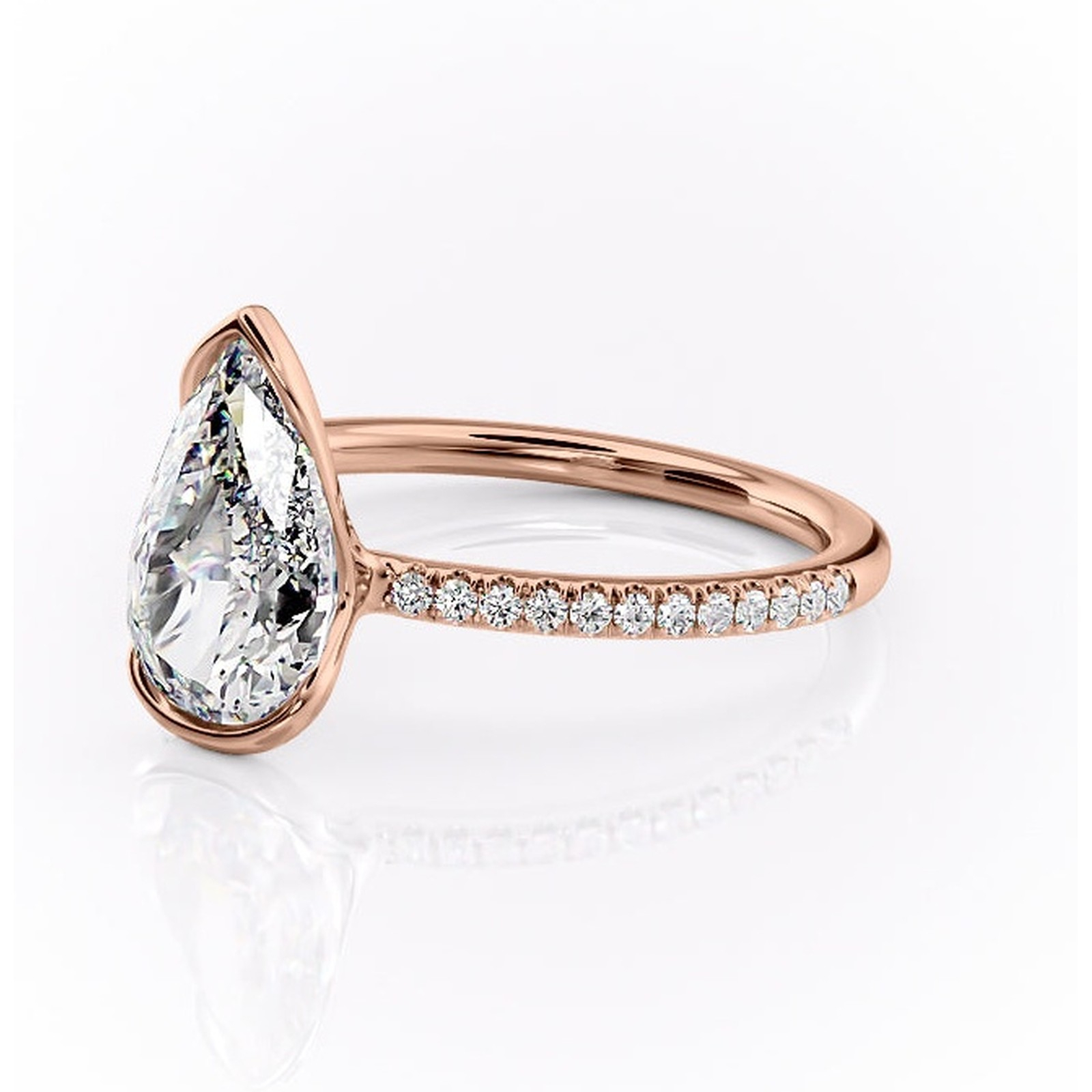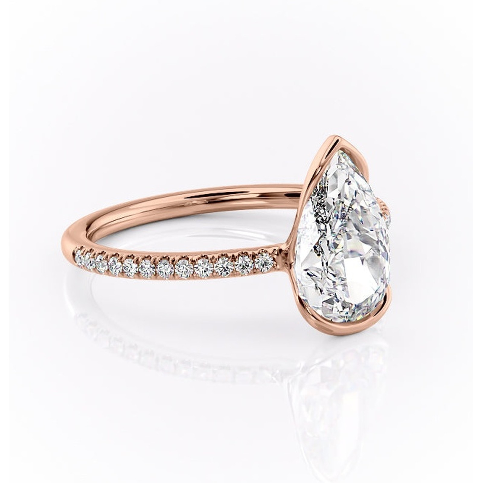 Inel de logodnă Maelis din aur Rose 14kt cu moissanite tăietură pară – Montură închisă rafinată pentru profil mediu | Personalizează și configurează gratuit online