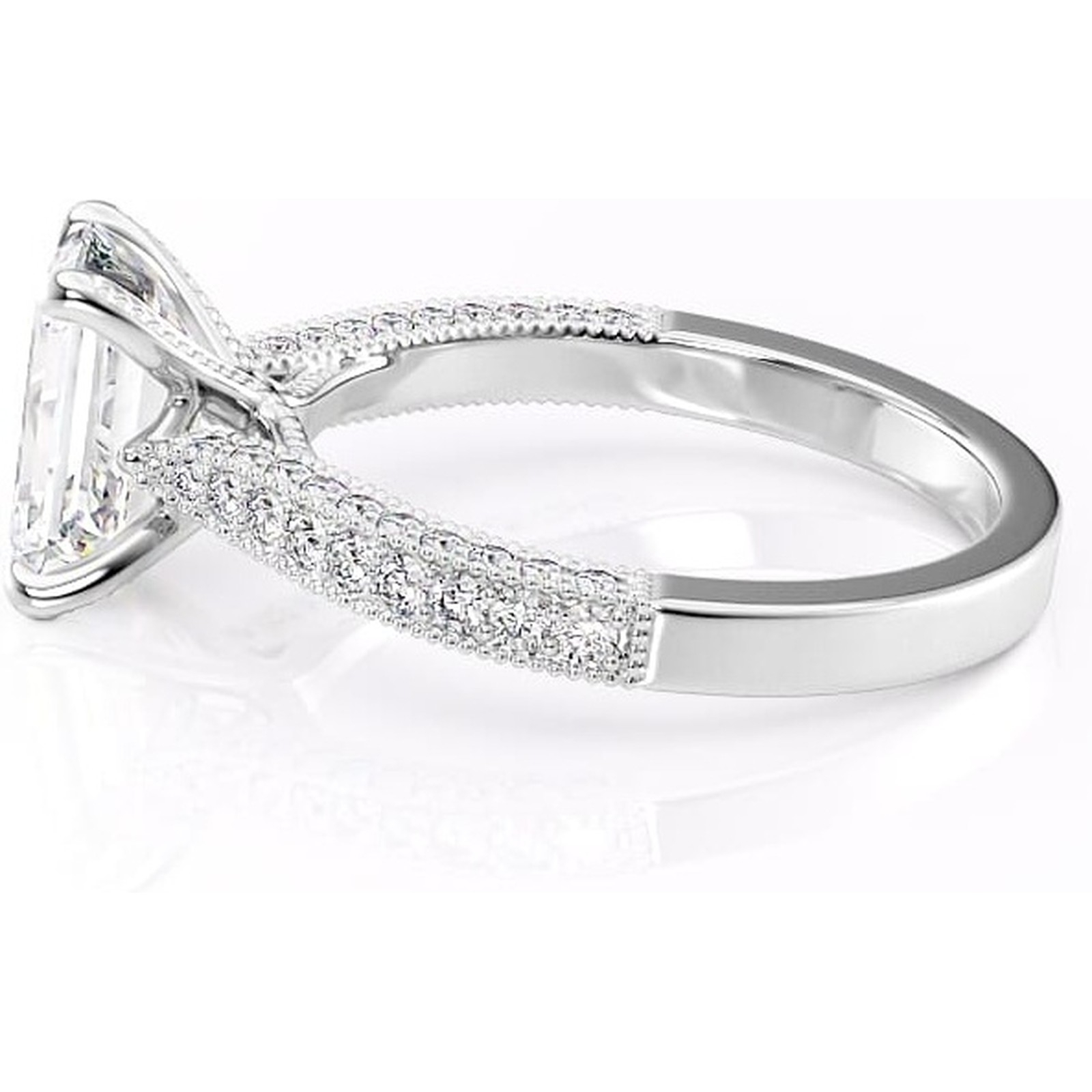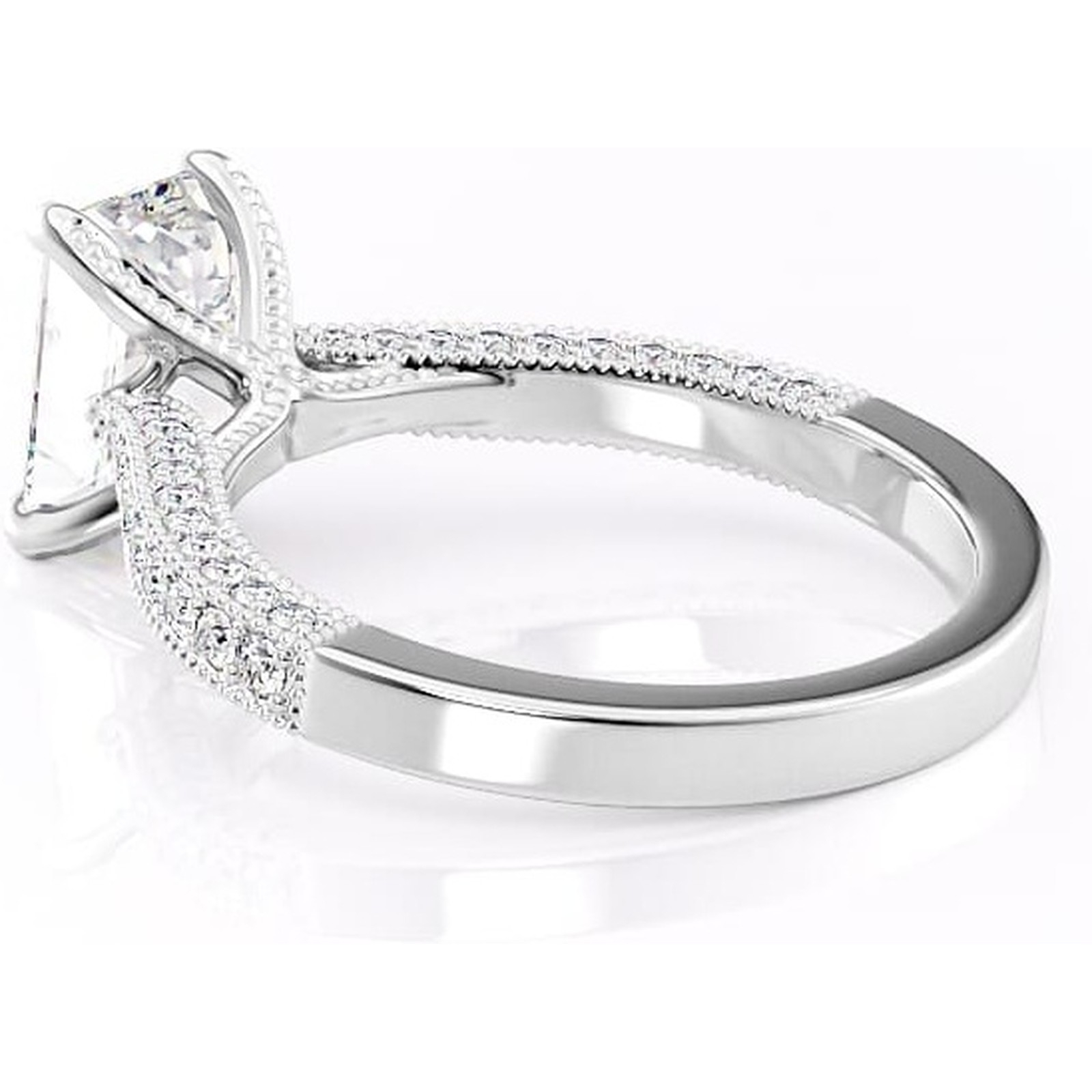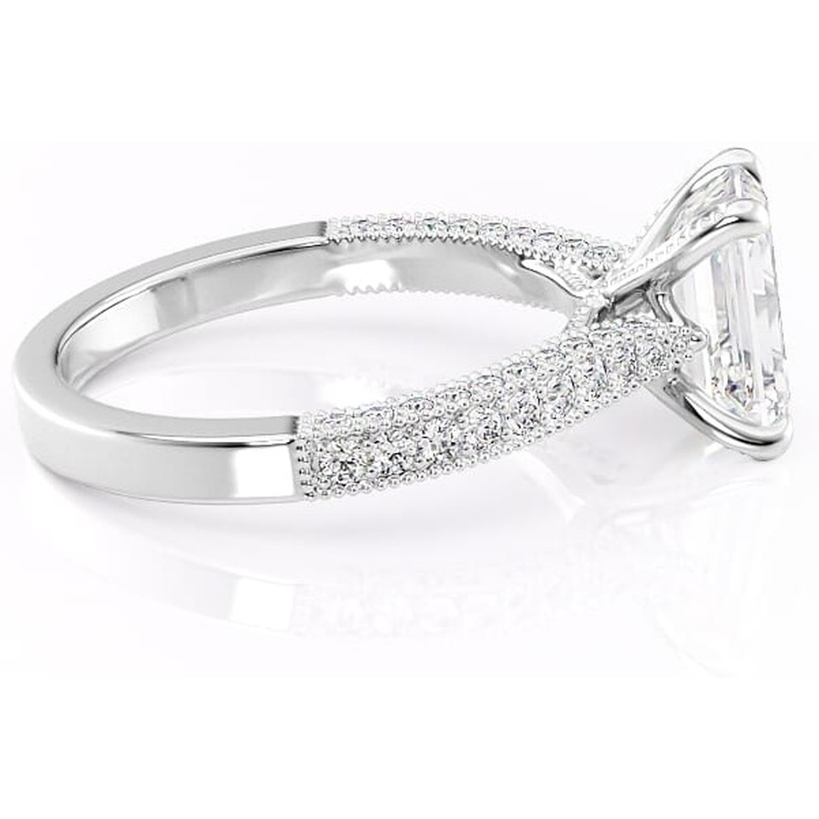 Inel de logodnă Romy din aur Alb 14kt cu moissanite tăietură smarald – Montură pavé rafinată pentru profil înalt | Personalizează și configurează gratuit online