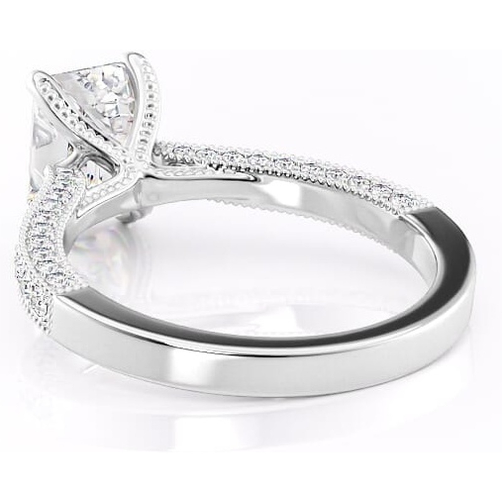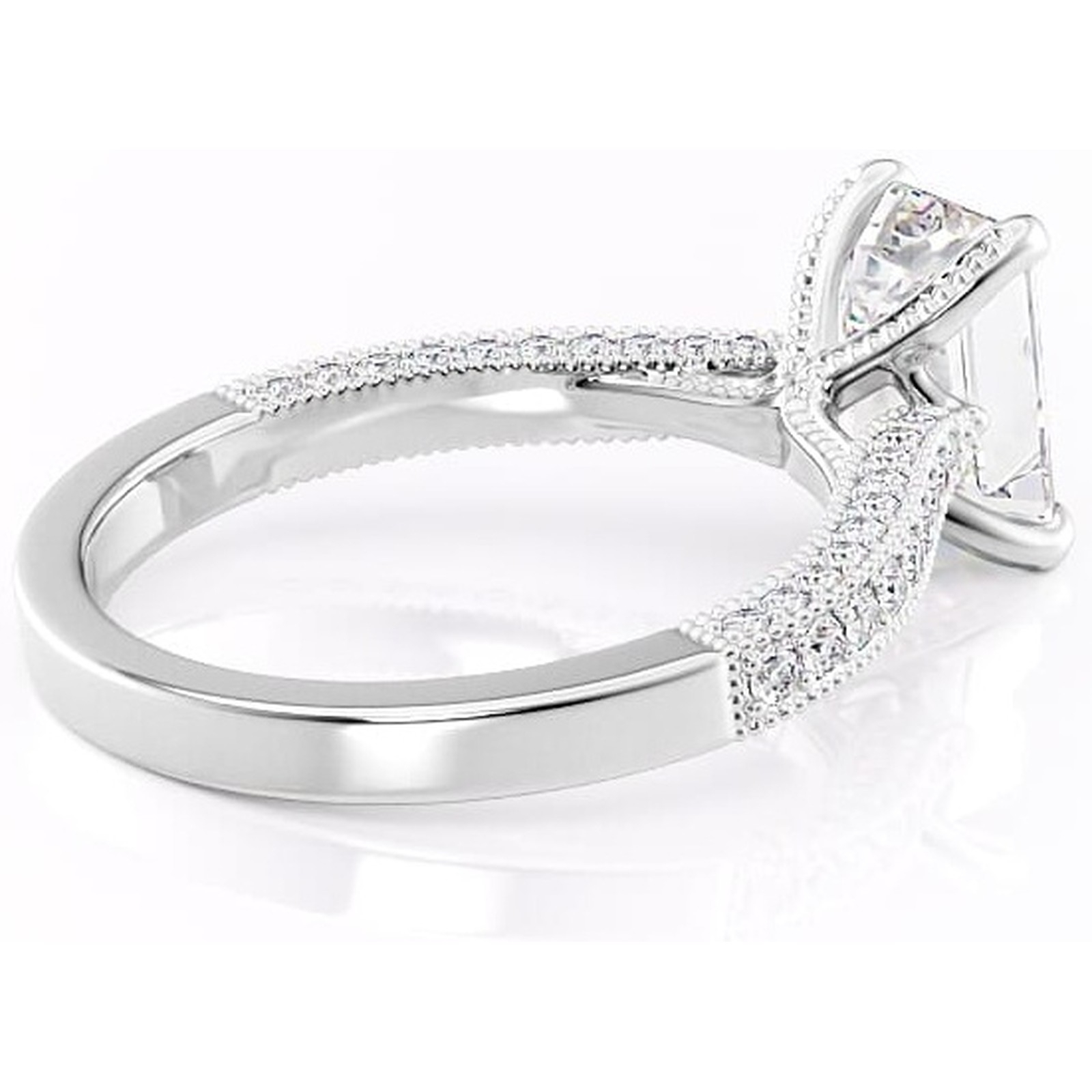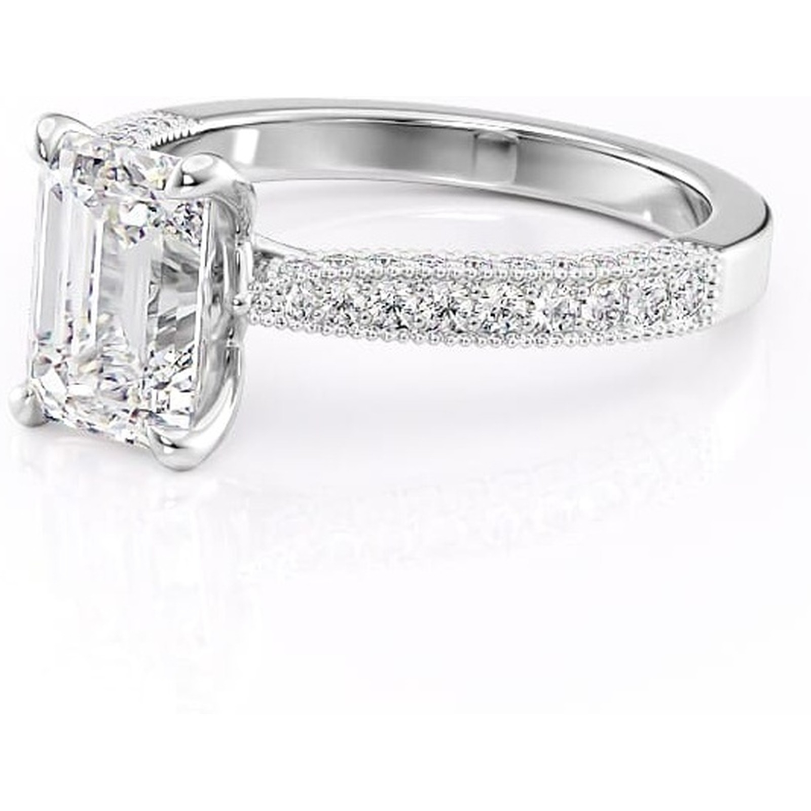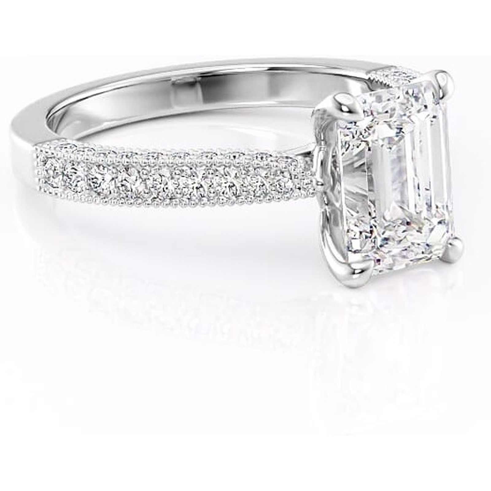 Inel de logodnă Romy din aur Alb 14kt cu moissanite tăietură smarald – Montură pavé rafinată pentru profil înalt | Personalizează și configurează gratuit online