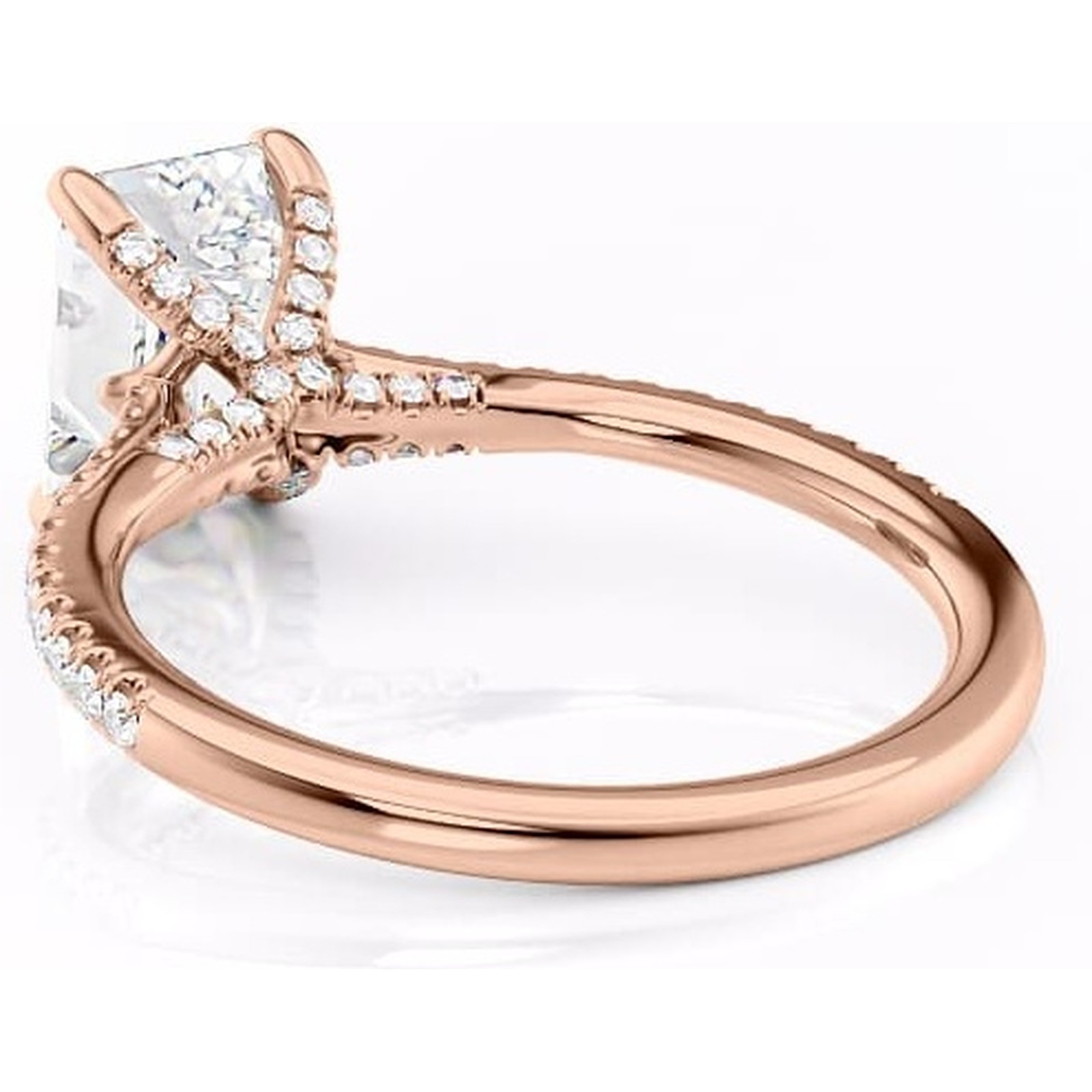 Inel de logodnă Noa din aur Rose 14kt cu moissanite tăietură smarald – Montură pavé rafinată pentru profil înalt | Personalizează și configurează gratuit online