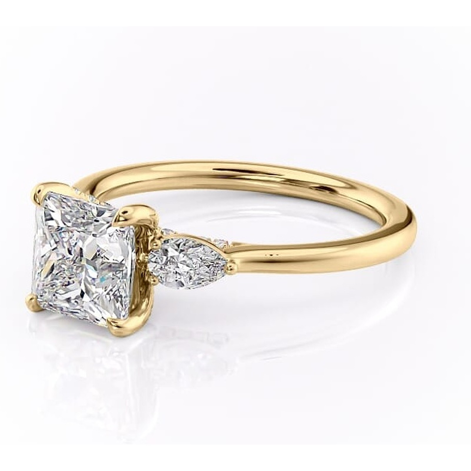 Inel de logodnă Matilda din aur Galben 14kt cu moissanite tăietură princess – Montură cu trei pietre rafinată pentru profil înalt | Personalizează și configurează gratuit online