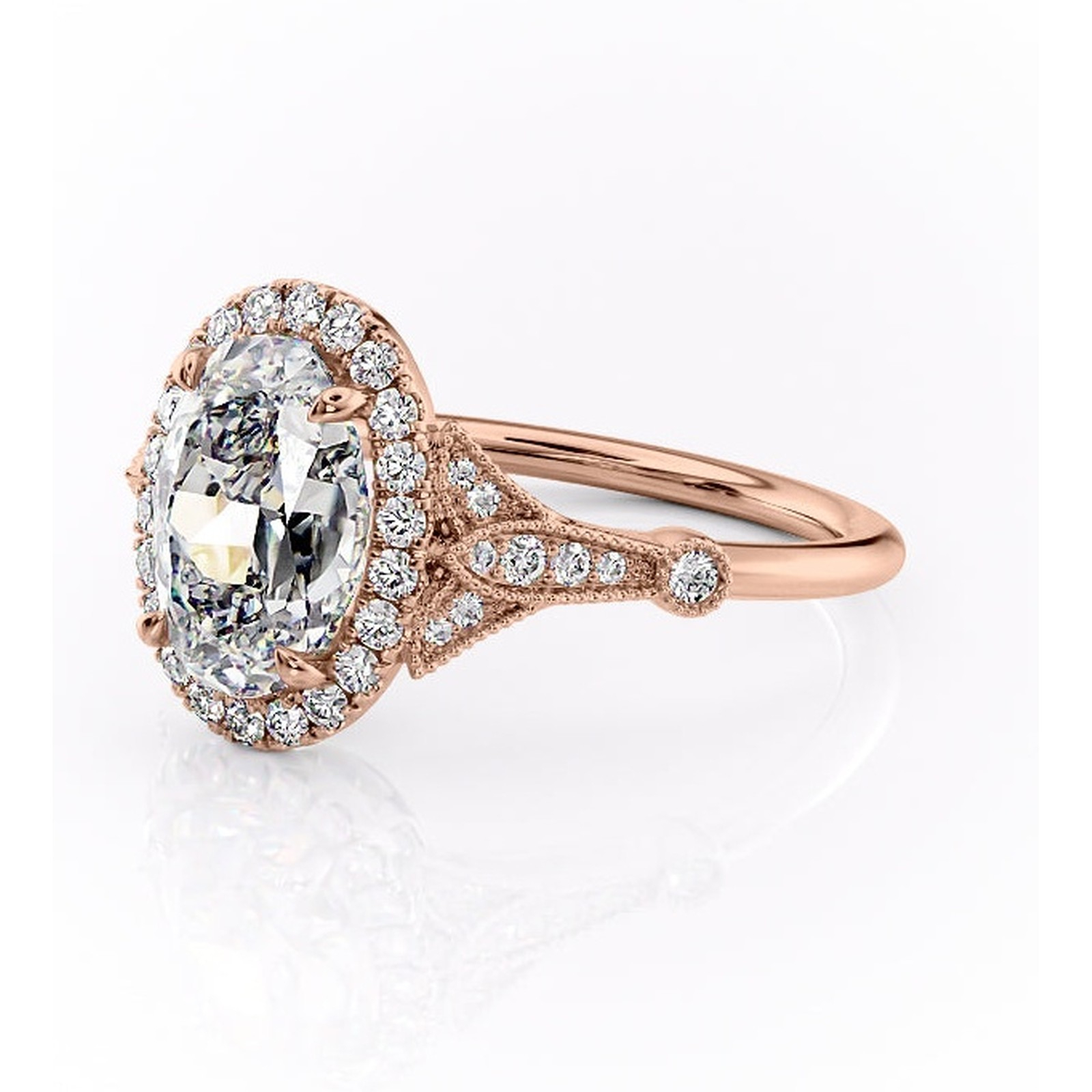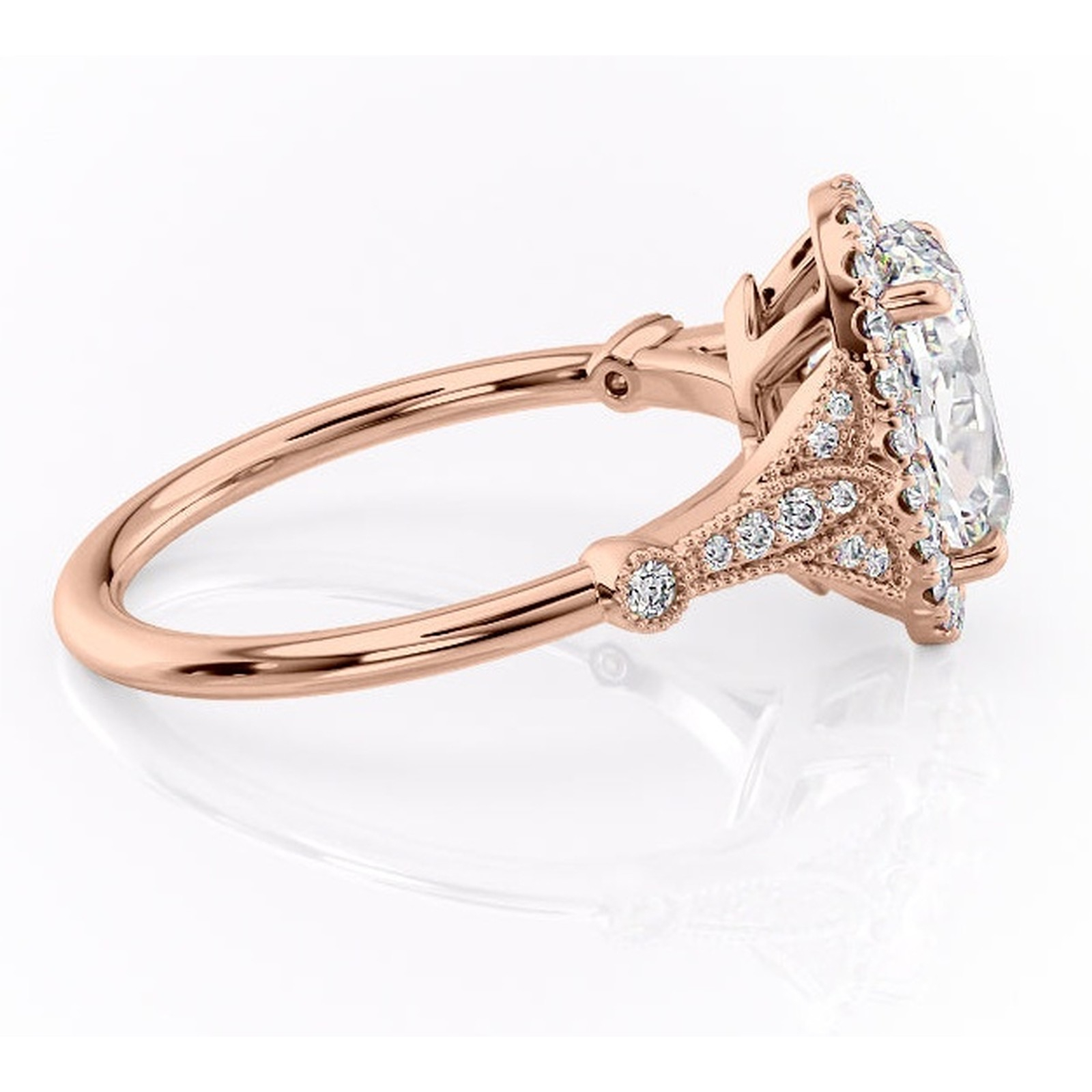 Inel de logodnă Citrina din aur Rose 14kt cu moissanite tăietură ovală – Halo rafinată pentru profil mediu | Personalizează și configurează gratuit online