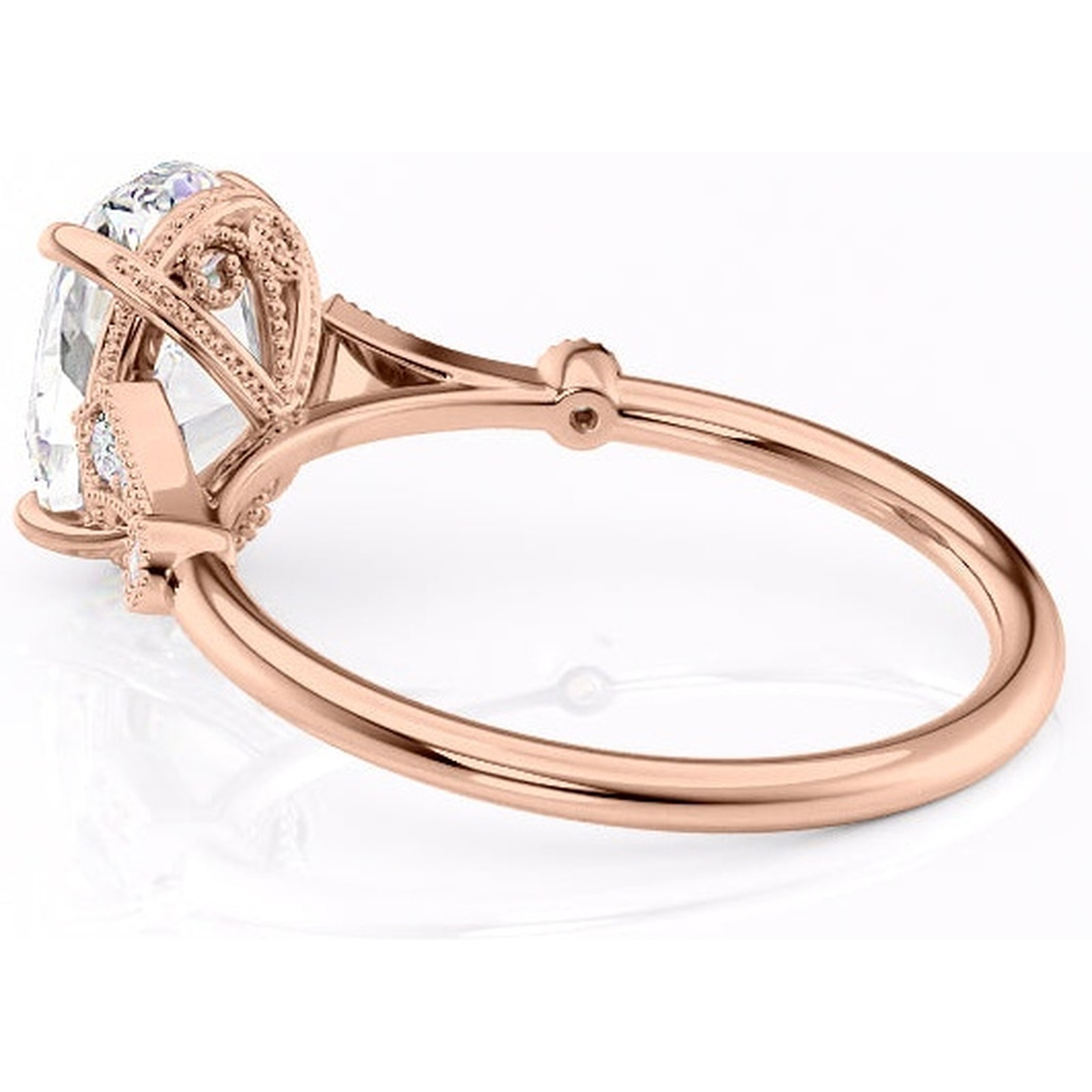 Inel de logodnă Lacey din aur Rose 14kt cu moissanite tăietură ovală – Pietre laterale rafinată pentru profil înalt | Personalizează și configurează gratuit online