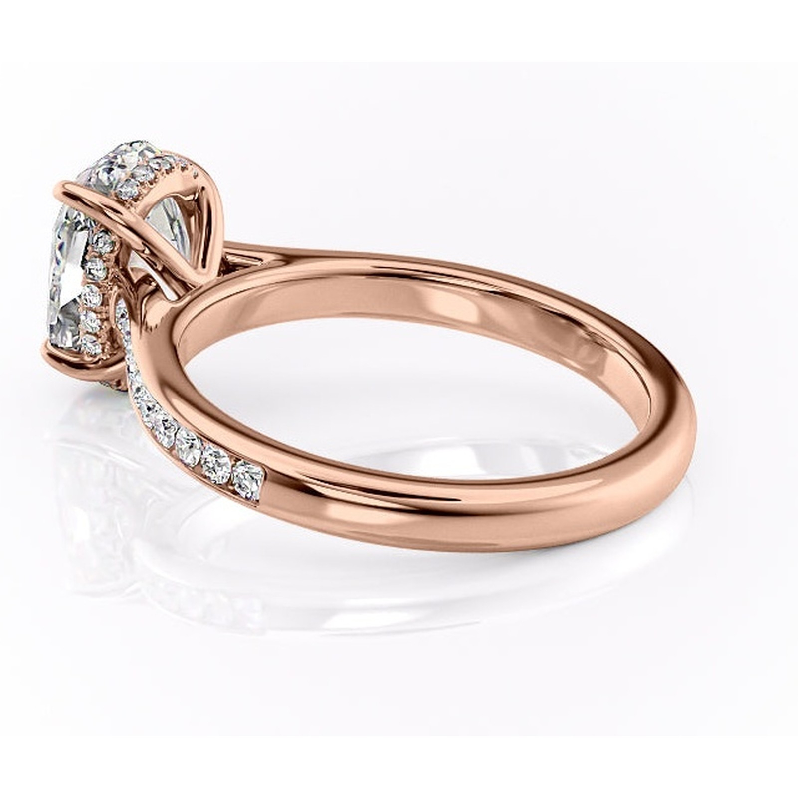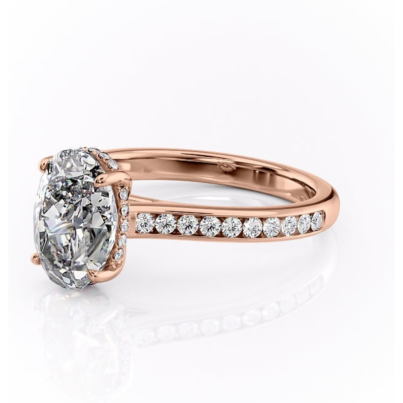 Inel de logodnă Perla din aur Rose 14kt cu moissanite tăietură ovală – Montură cu canal rafinată pentru profil înalt | Personalizează și configurează gratuit online