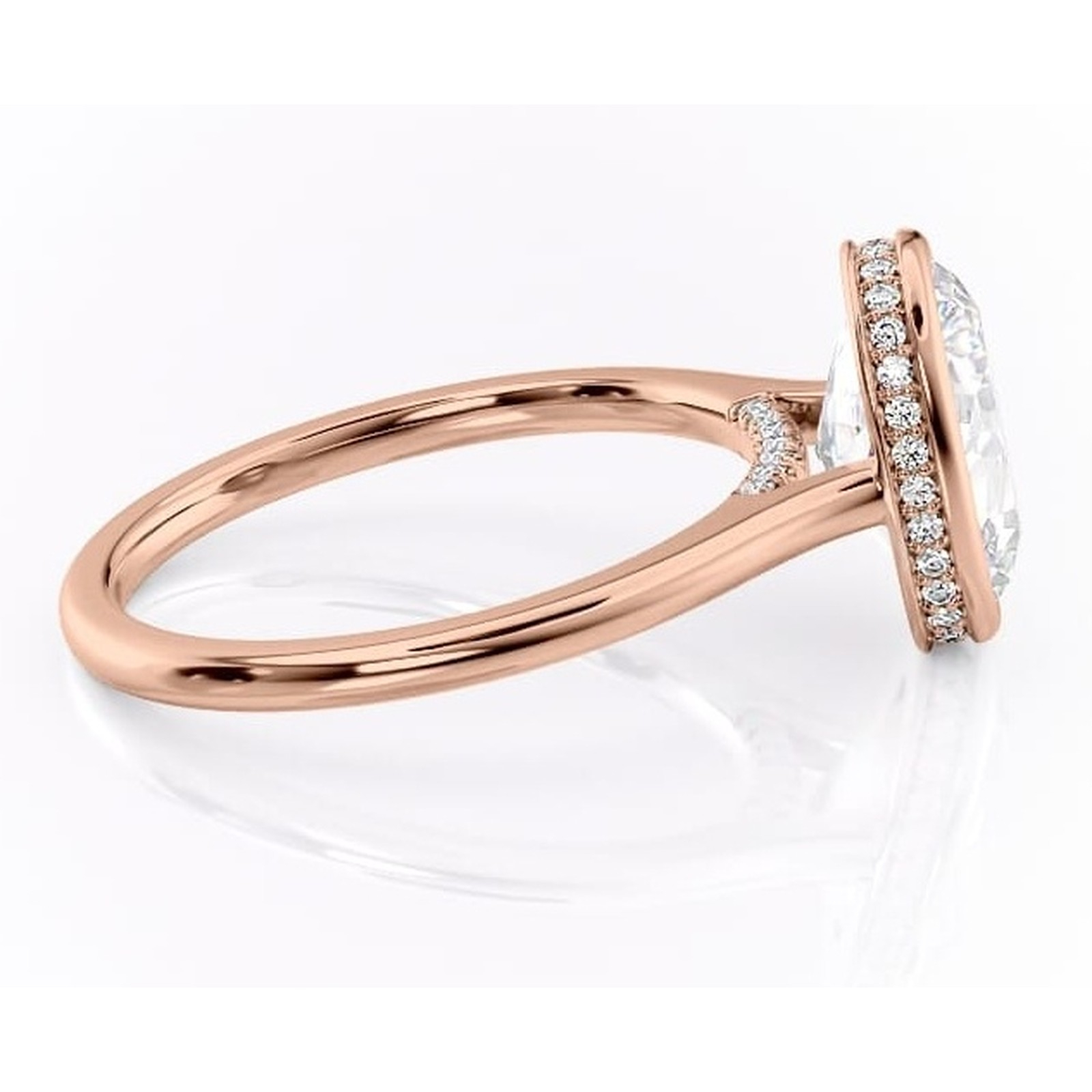 Inel de logodnă Wisteria din aur Rose 14kt cu moissanite tăietură ovală – Solitar rafinată pentru profil înalt | Personalizează și configurează gratuit online