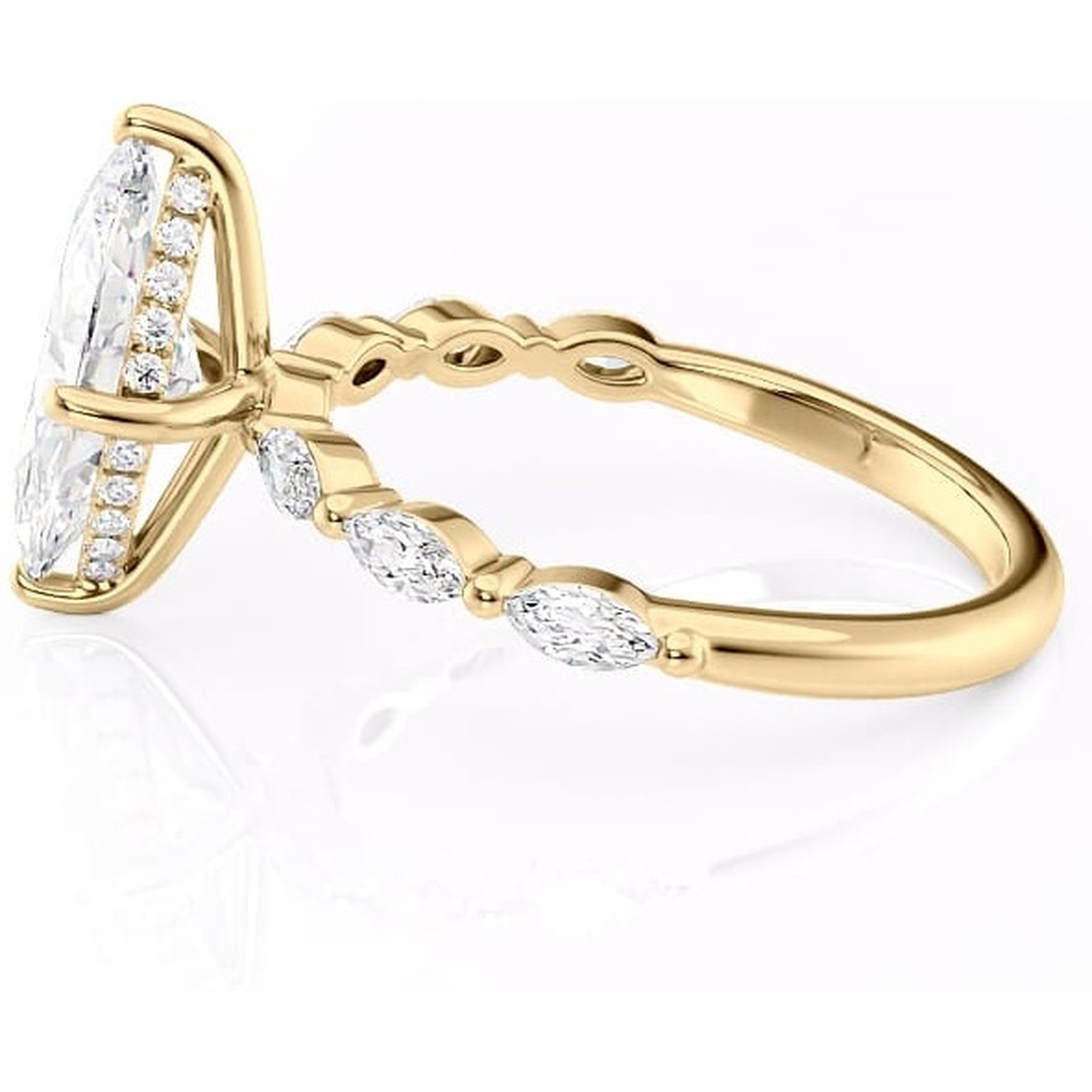 Inel de logodnă Everly din aur Galben 14kt cu moissanite tăietură marquise – Pietre laterale rafinată pentru profil înalt | Personalizează și configurează gratuit online