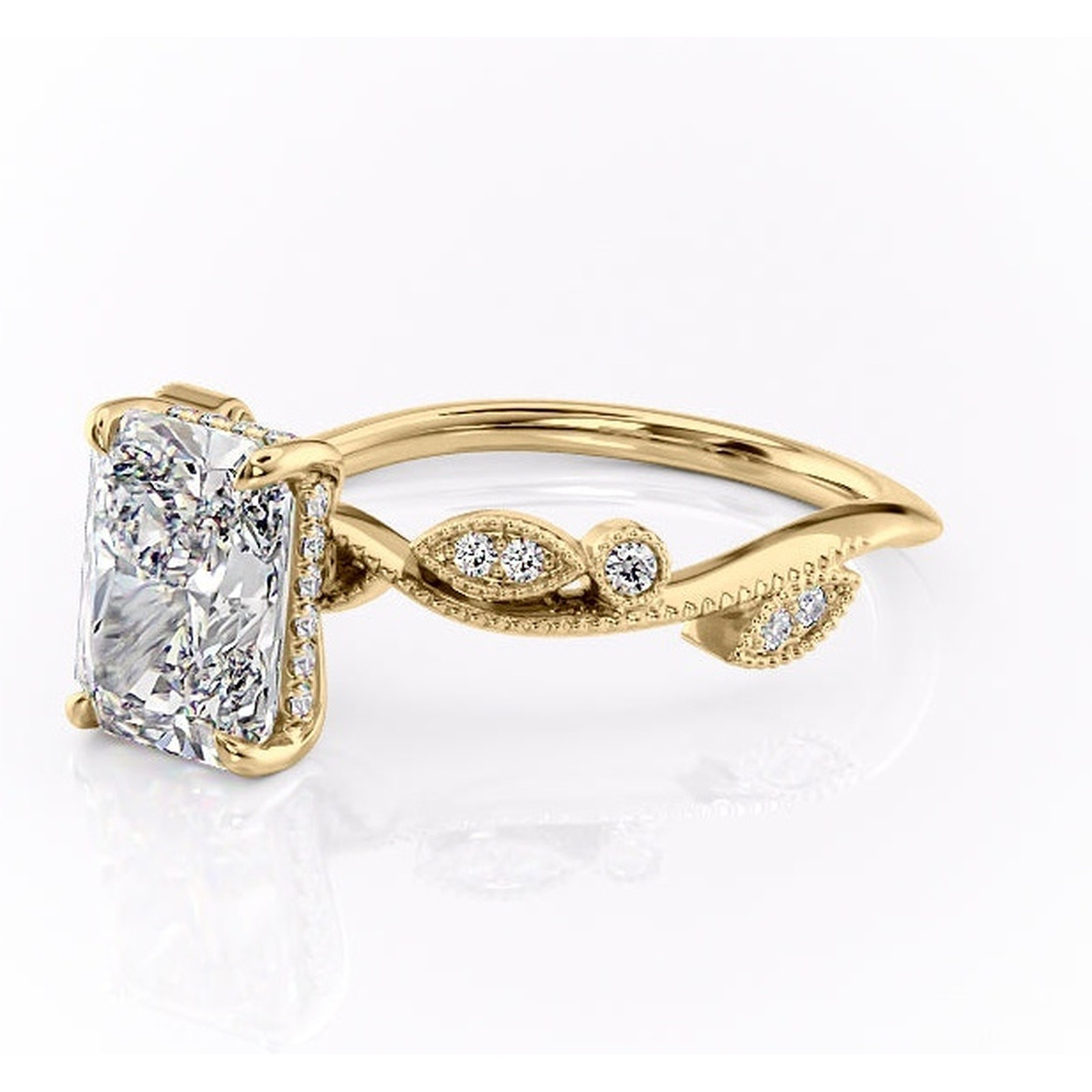 Inel de logodnă Aurelia din aur Galben 14kt cu moissanite tăietură radiantă – Pietre laterale rafinată pentru profil înalt | Personalizează și configurează gratuit online