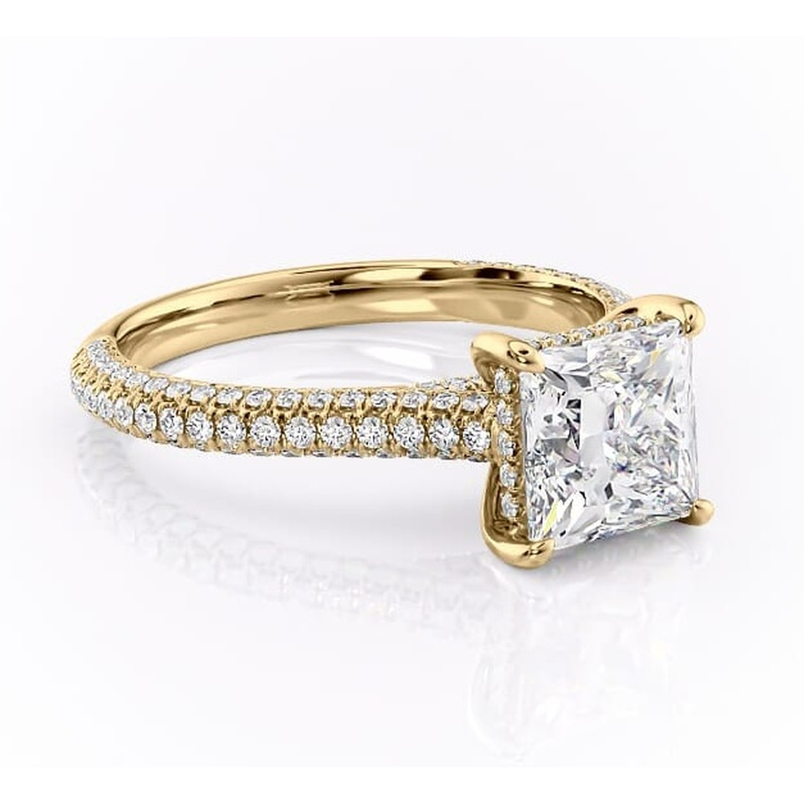 Inel de logodnă Seraphina din aur Galben 14kt cu moissanite tăietură princess – Montură pavé rafinată pentru profil înalt | Personalizează și configurează gratuit online