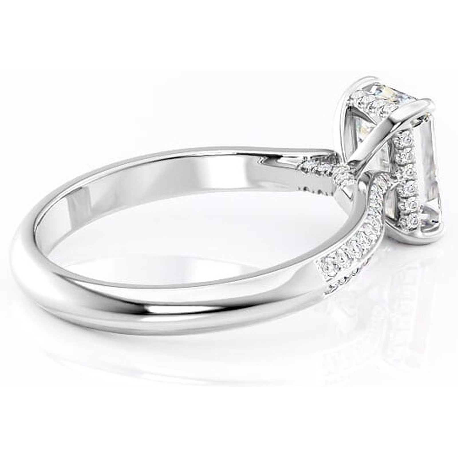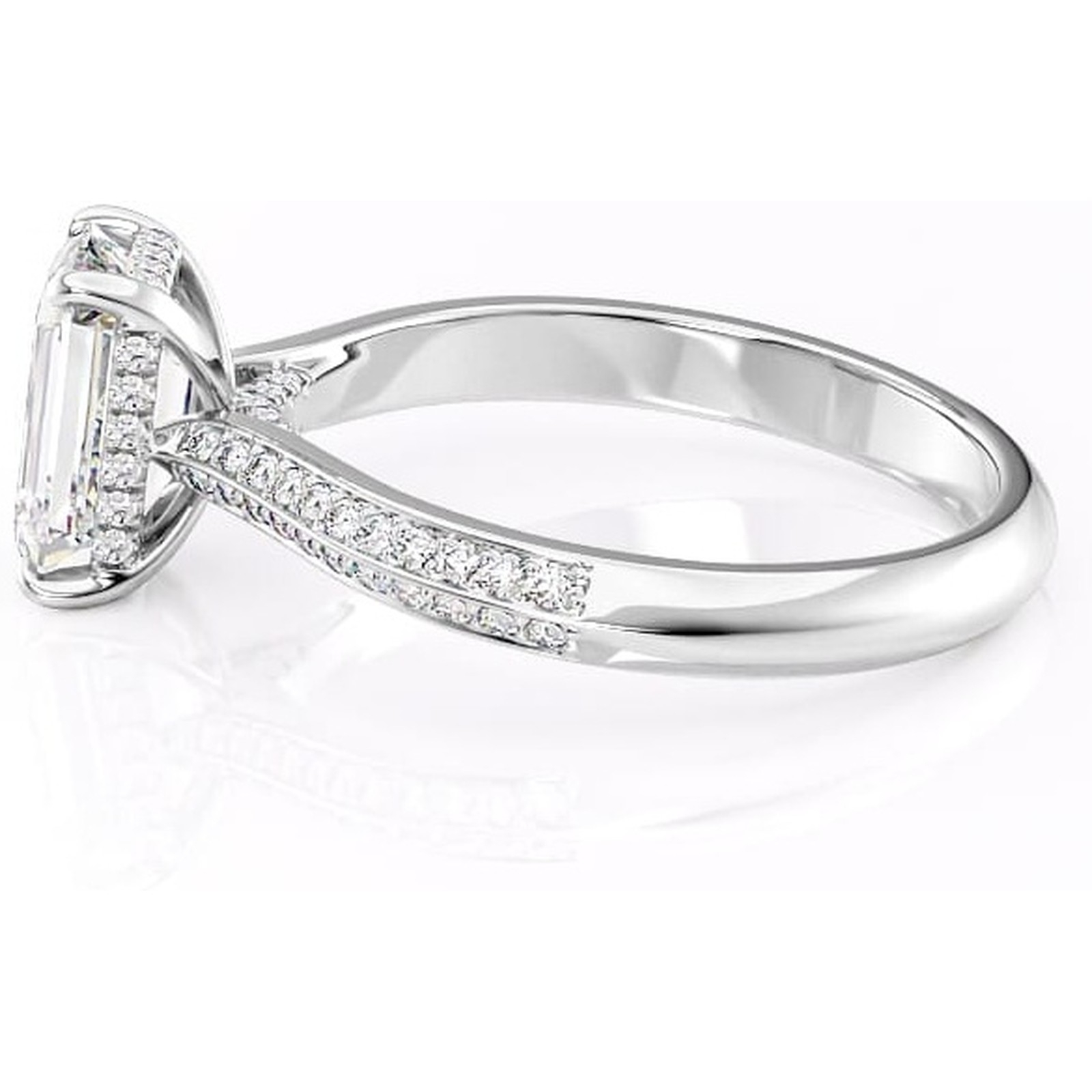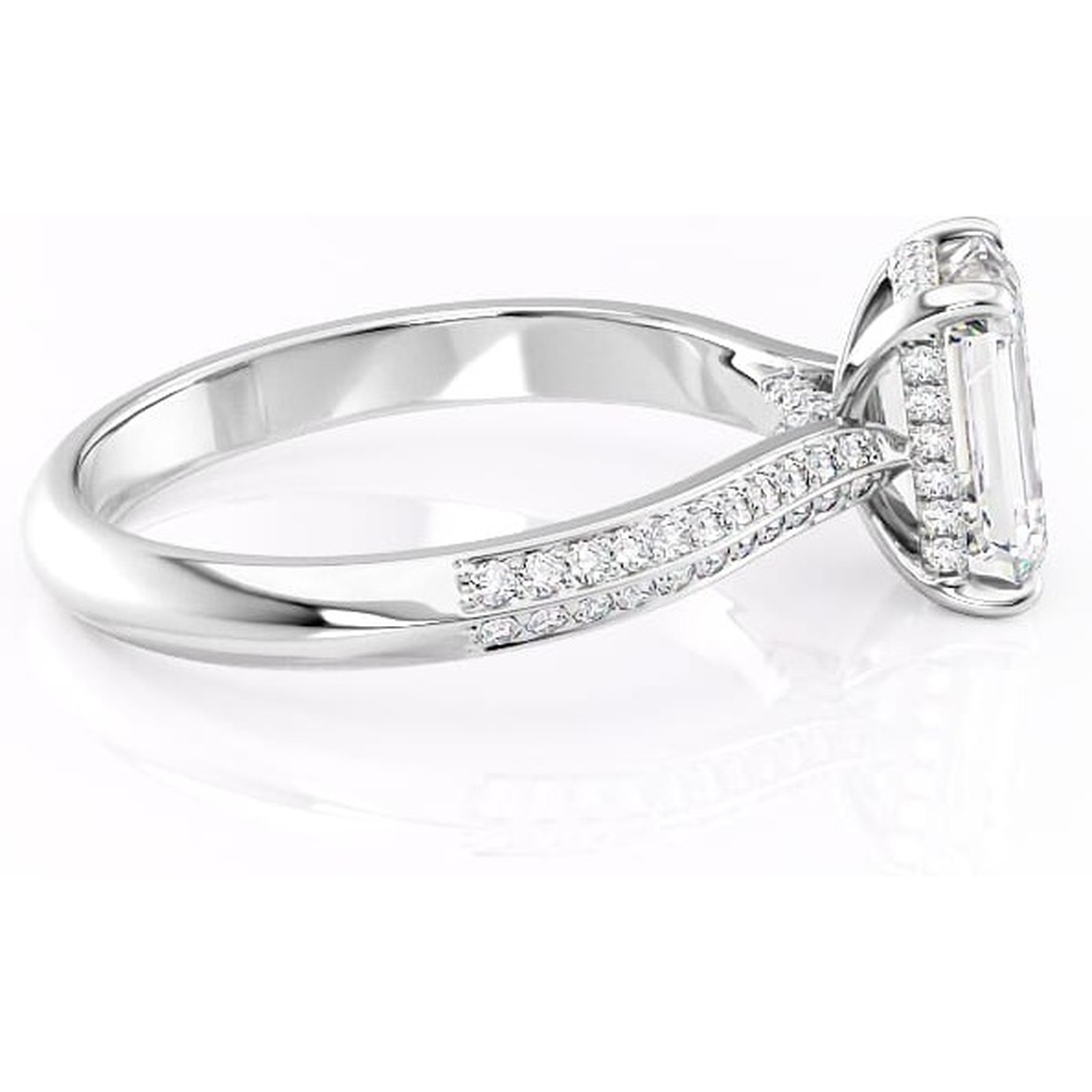 Inel de logodnă Elara din aur Alb 18kt cu moissanite tăietură smarald – Montură pavé rafinată pentru profil înalt | Personalizează și configurează gratuit online