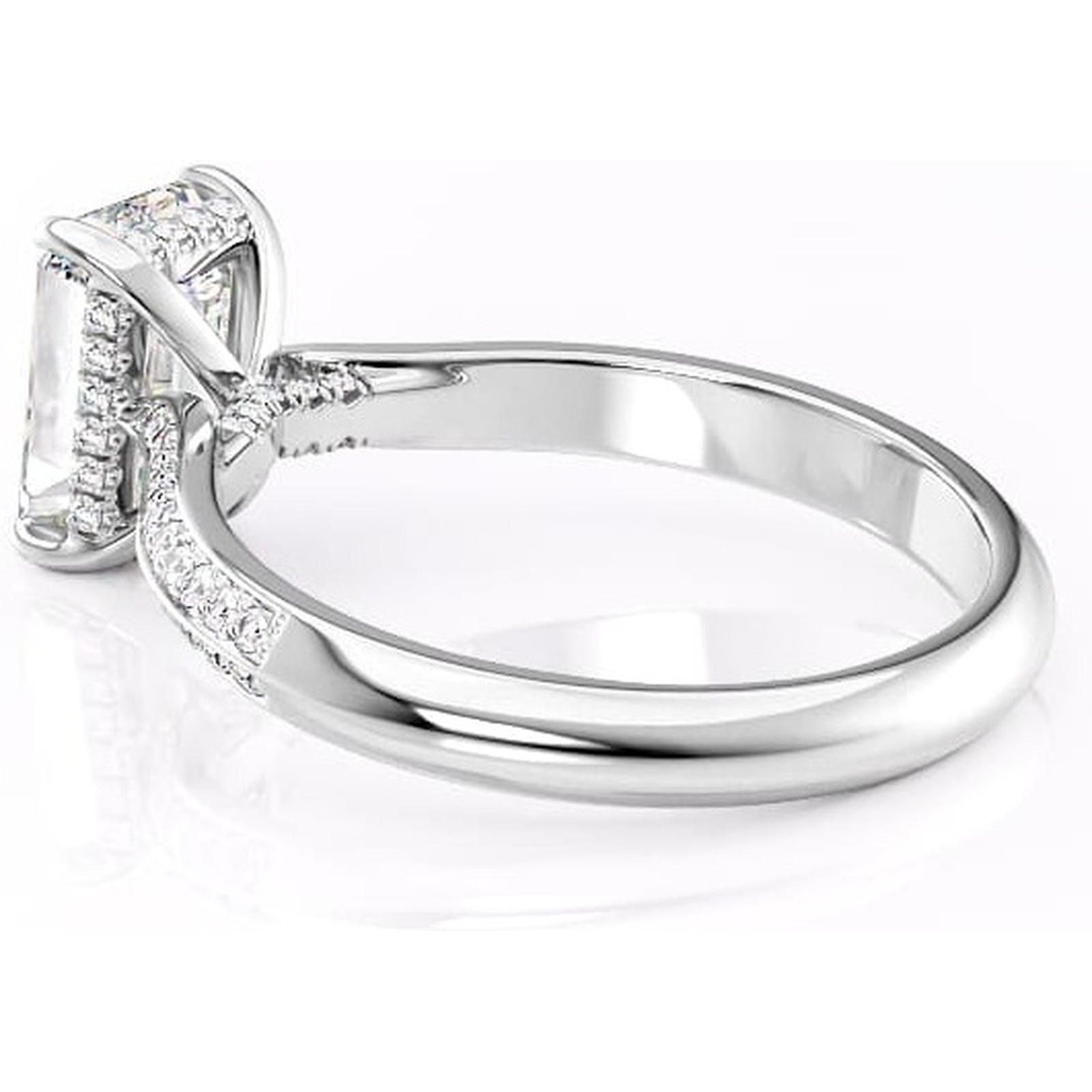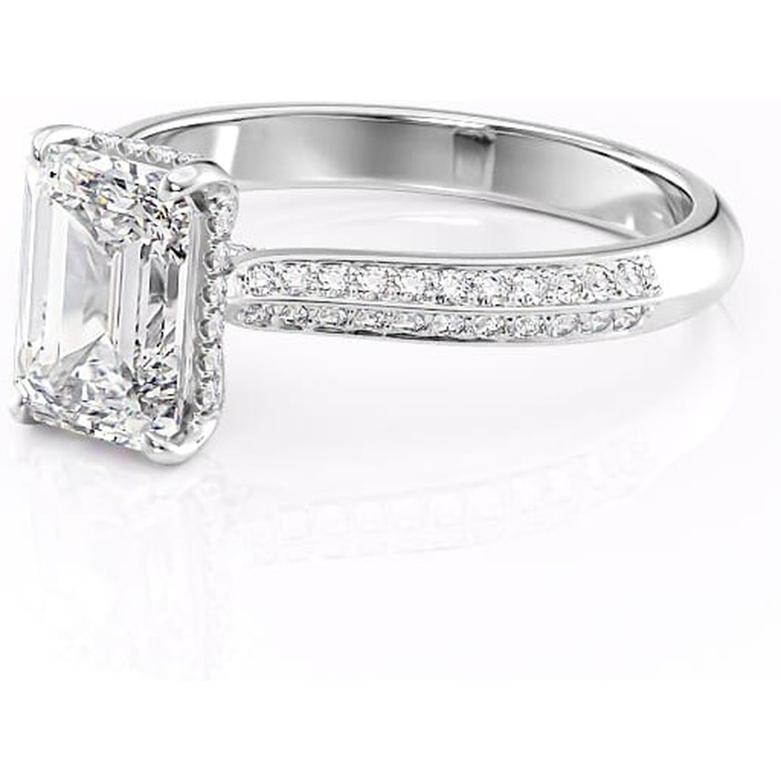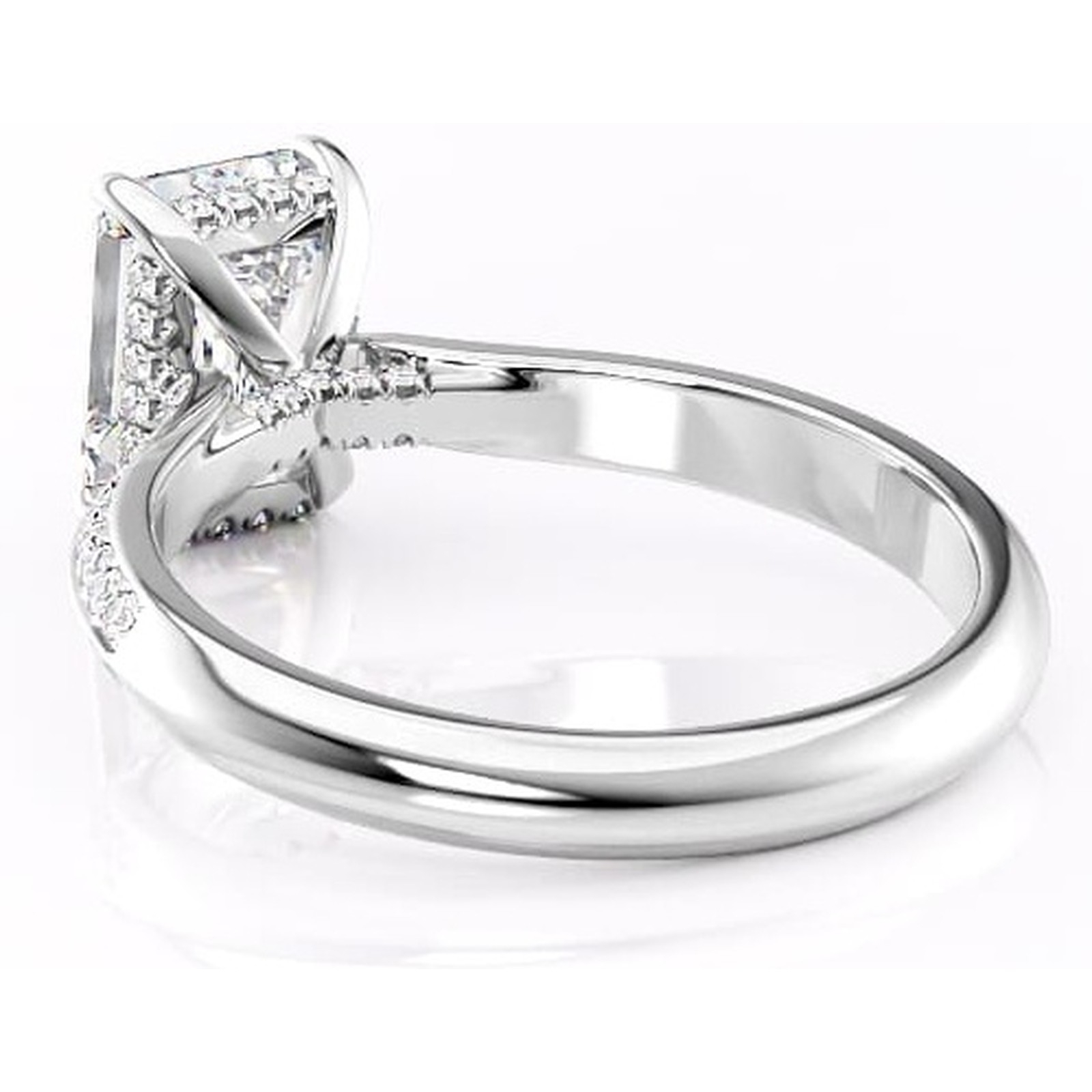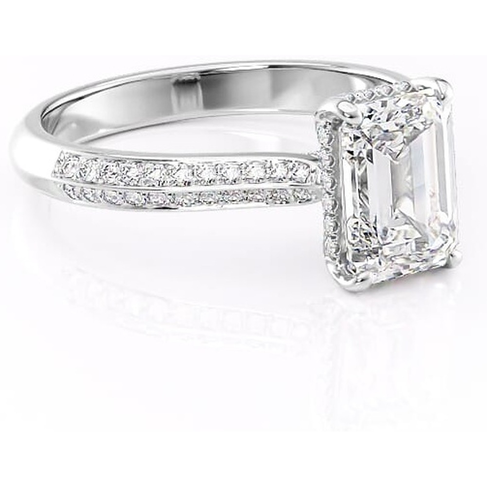 Inel de logodnă Elara din aur Alb 18kt cu moissanite tăietură smarald – Montură pavé rafinată pentru profil înalt | Personalizează și configurează gratuit online