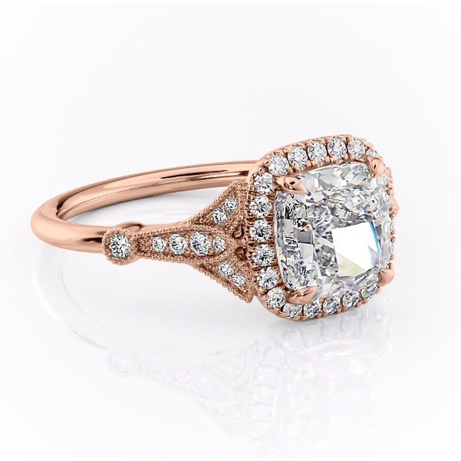 Inel de logodnă Citrina din aur Rose 18kt cu moissanite tăietură pernă – Halo rafinată pentru profil mediu | Personalizează și configurează gratuit online