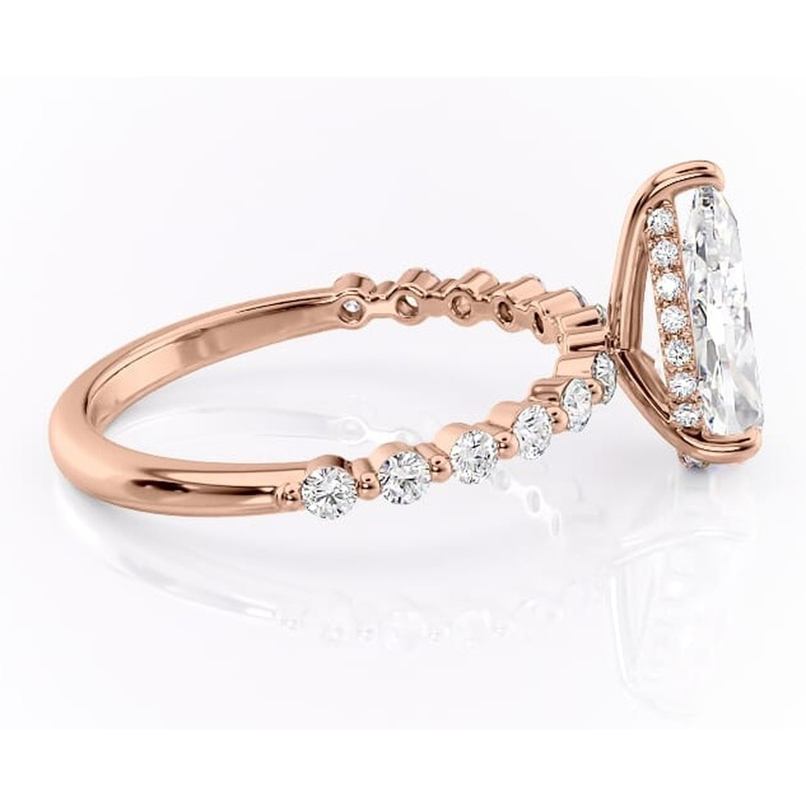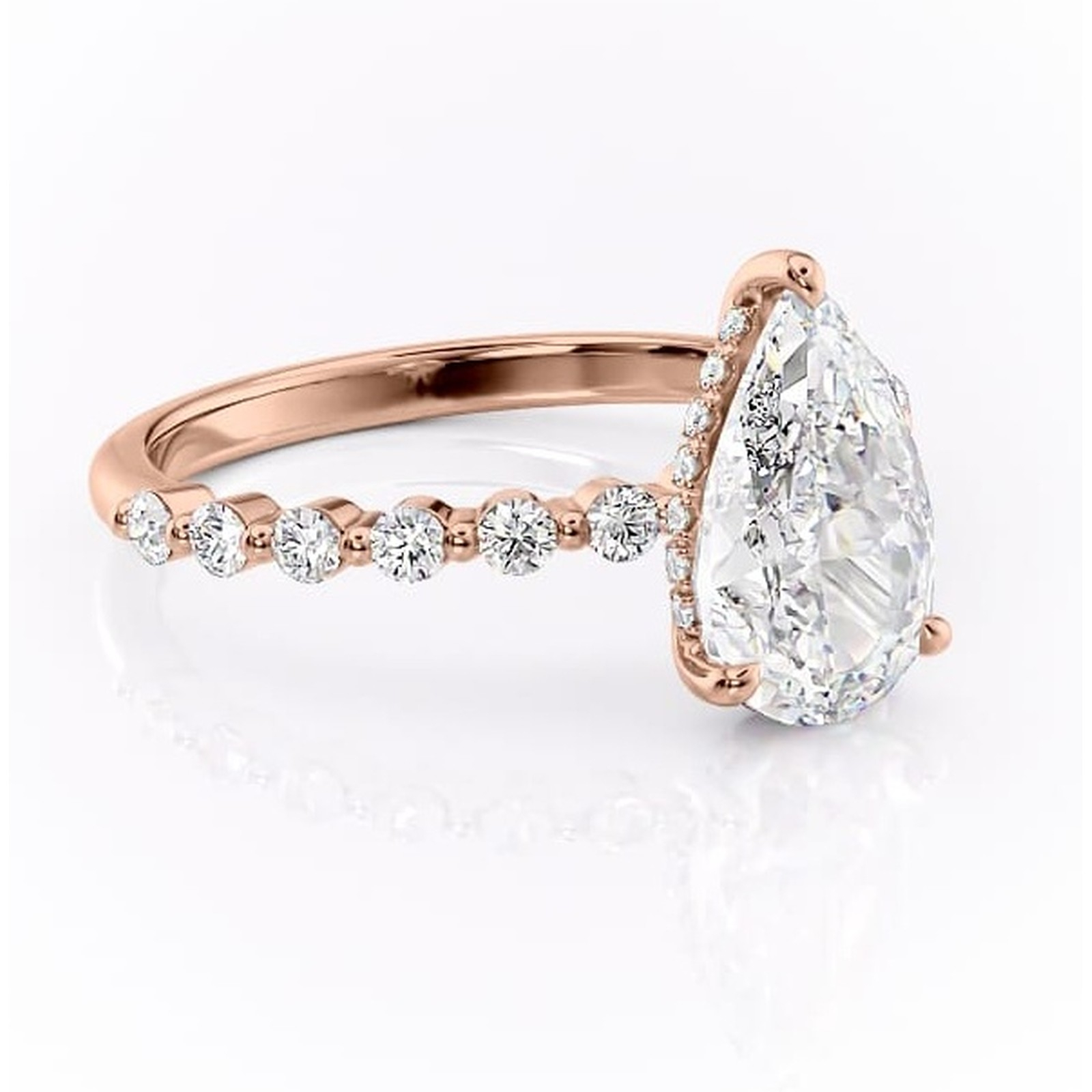 Inel de logodnă Amara din aur Rose 18kt cu moissanite tăietură pară – Pietre laterale rafinată pentru profil înalt | Personalizează și configurează gratuit online