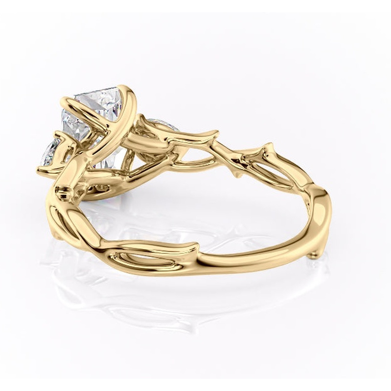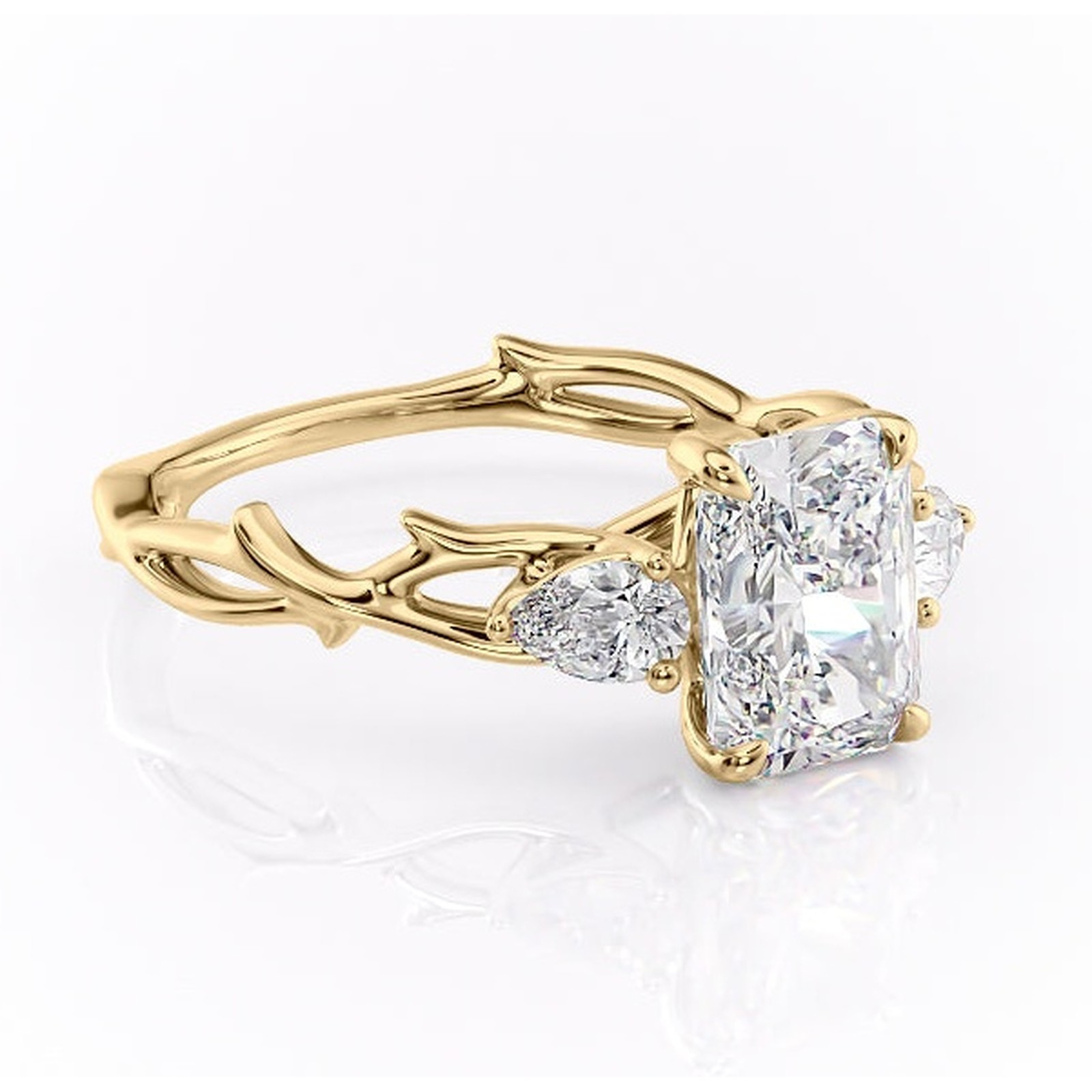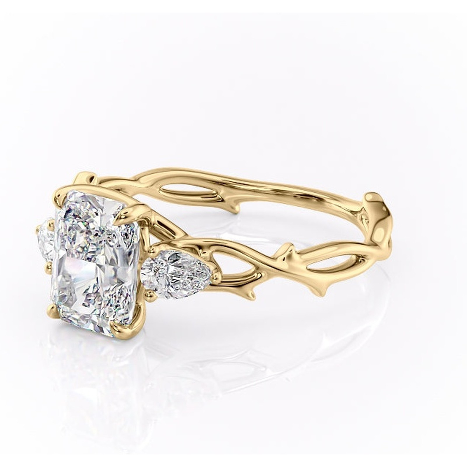 Inel de logodnă Elira din aur Galben 18kt cu moissanite tăietură radiantă – Montură cu trei pietre rafinată pentru profil mediu | Personalizează și configurează gratuit online