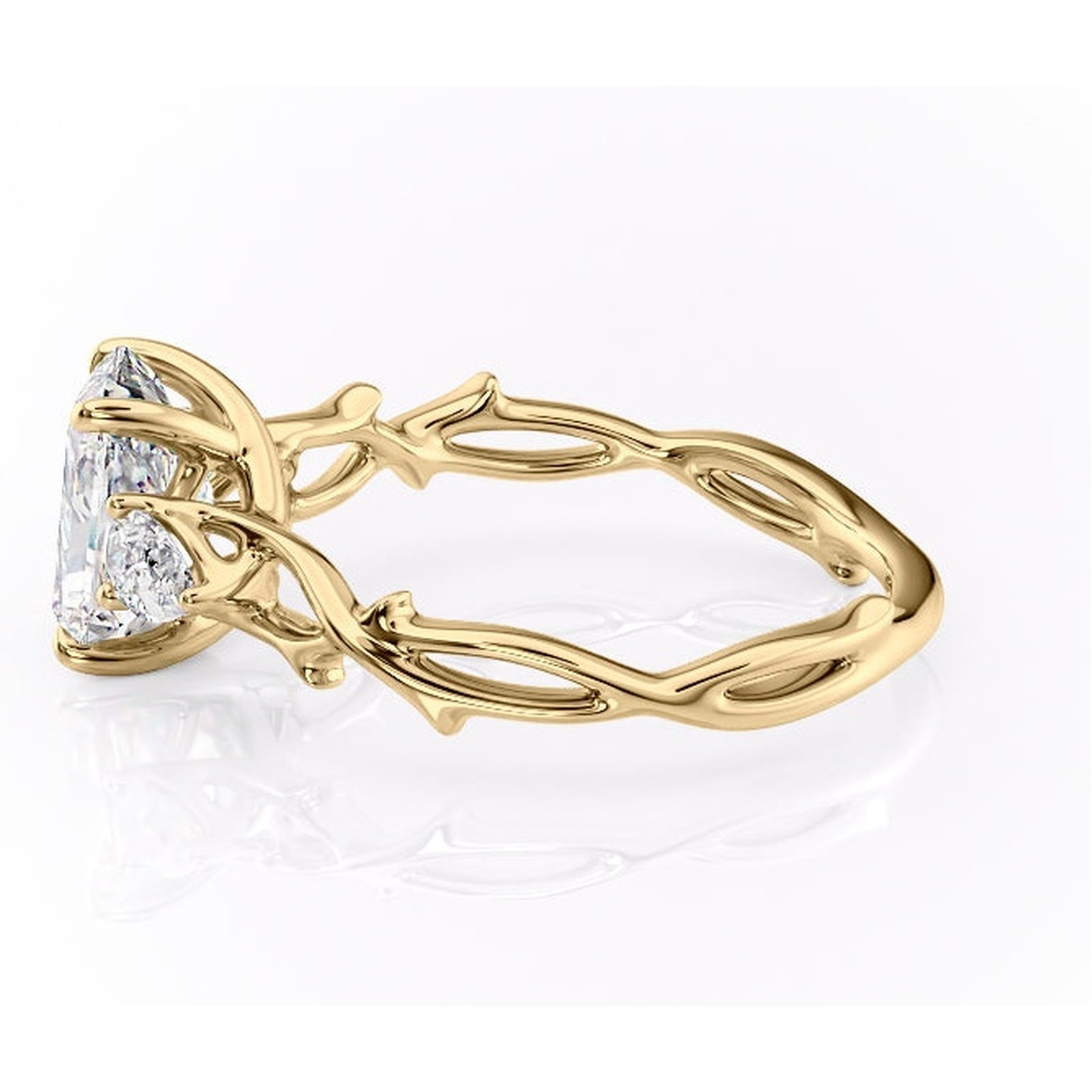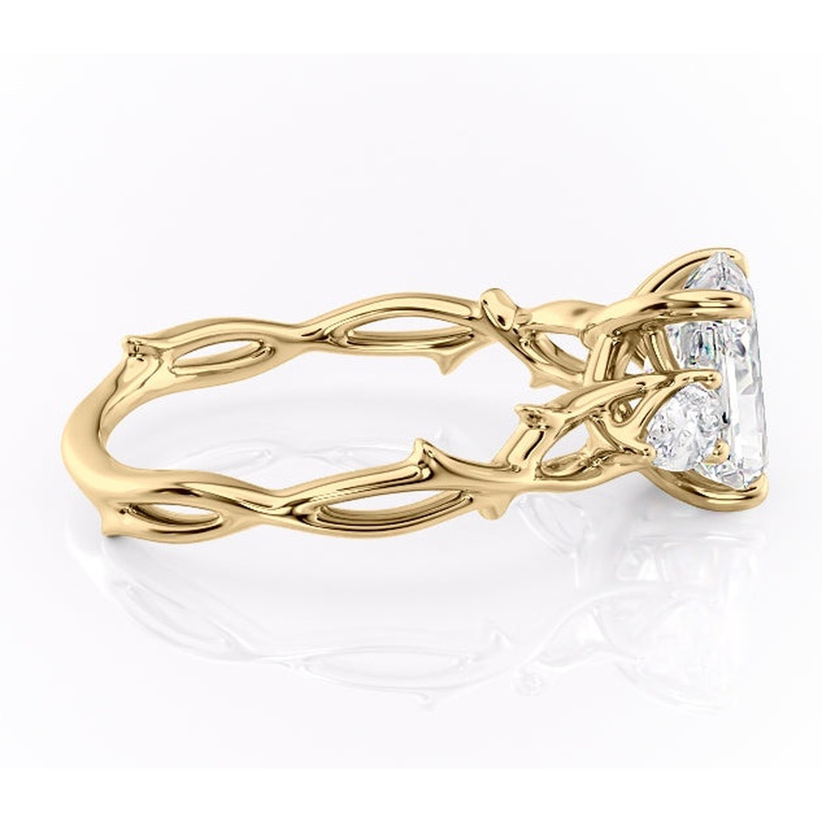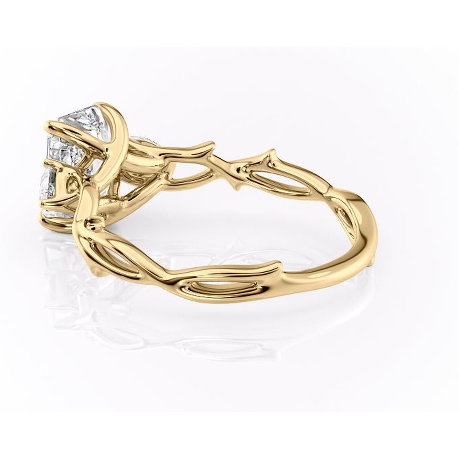 Inel de logodnă Elira din aur Galben 18kt cu moissanite tăietură radiantă – Montură cu trei pietre rafinată pentru profil mediu | Personalizează și configurează gratuit online