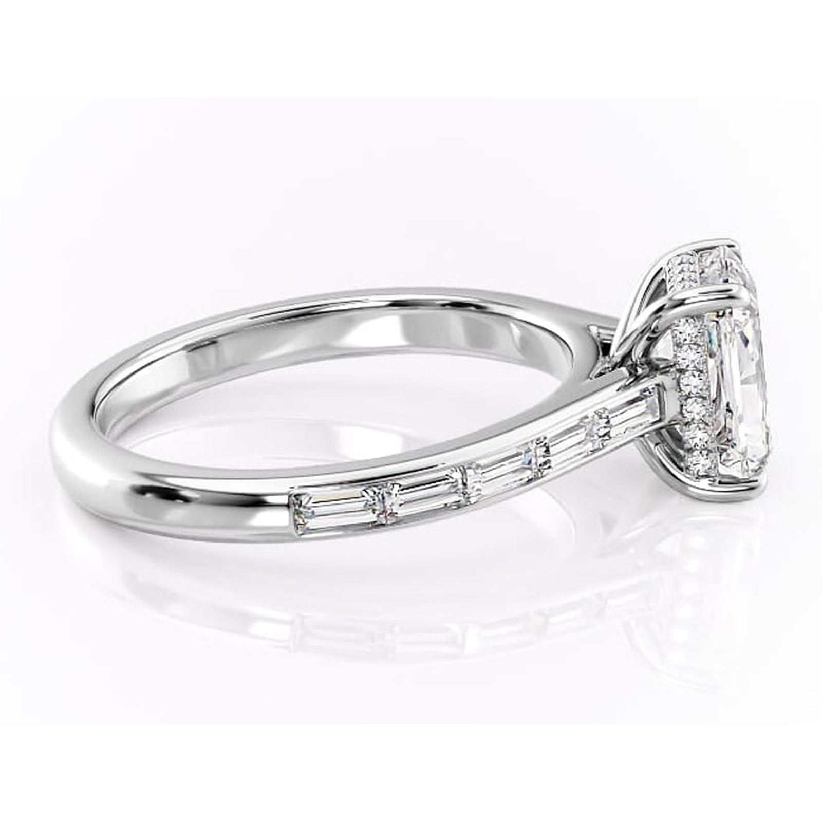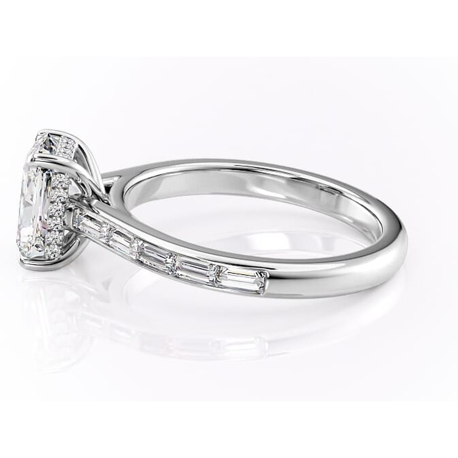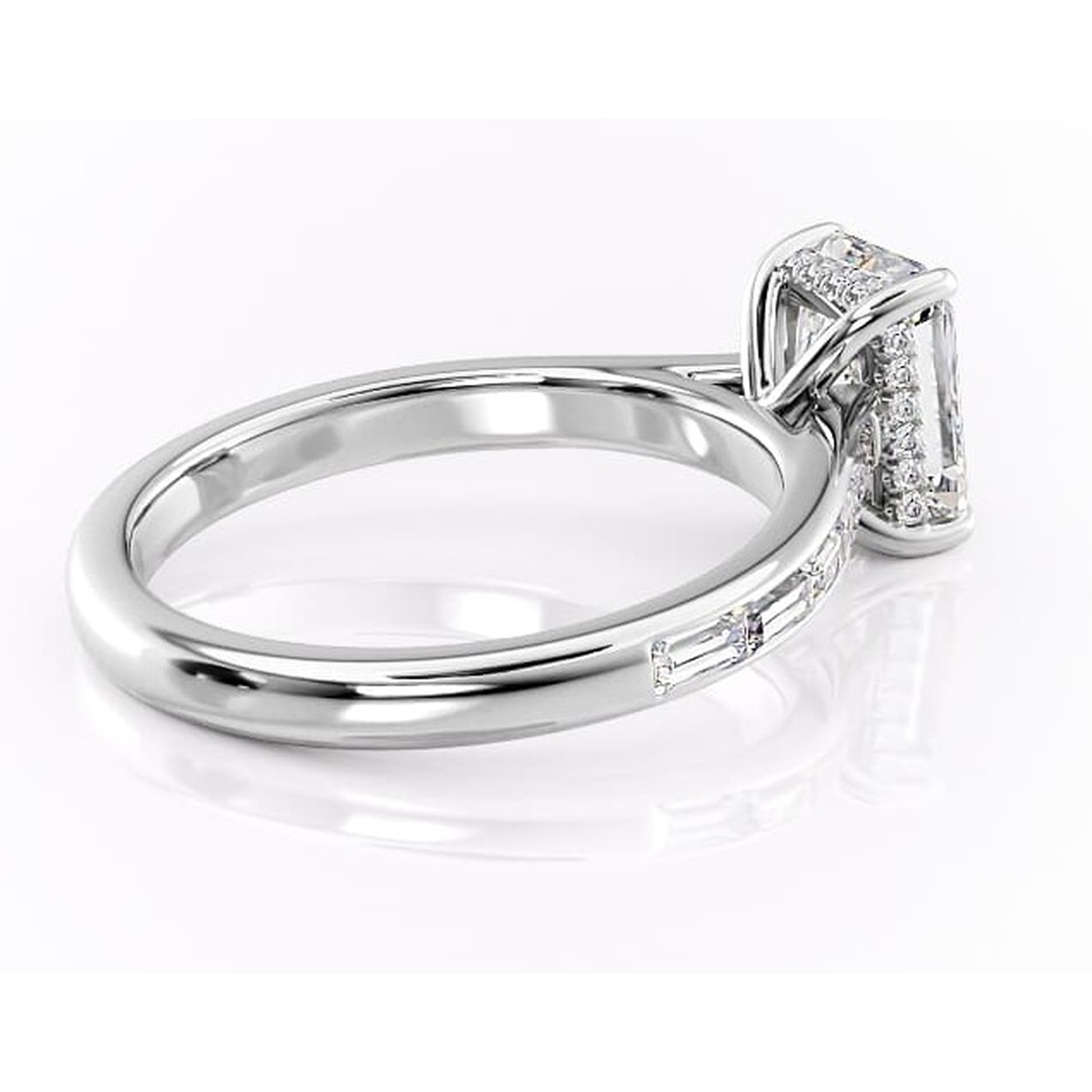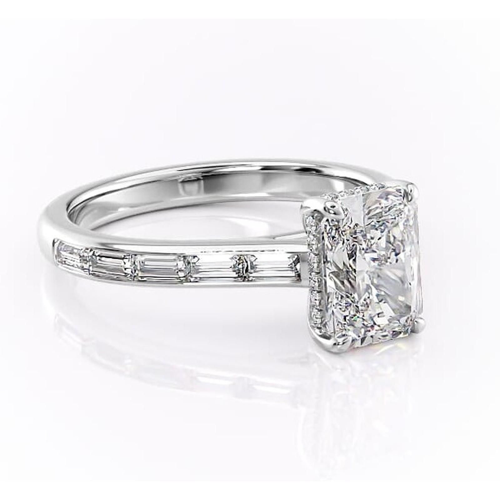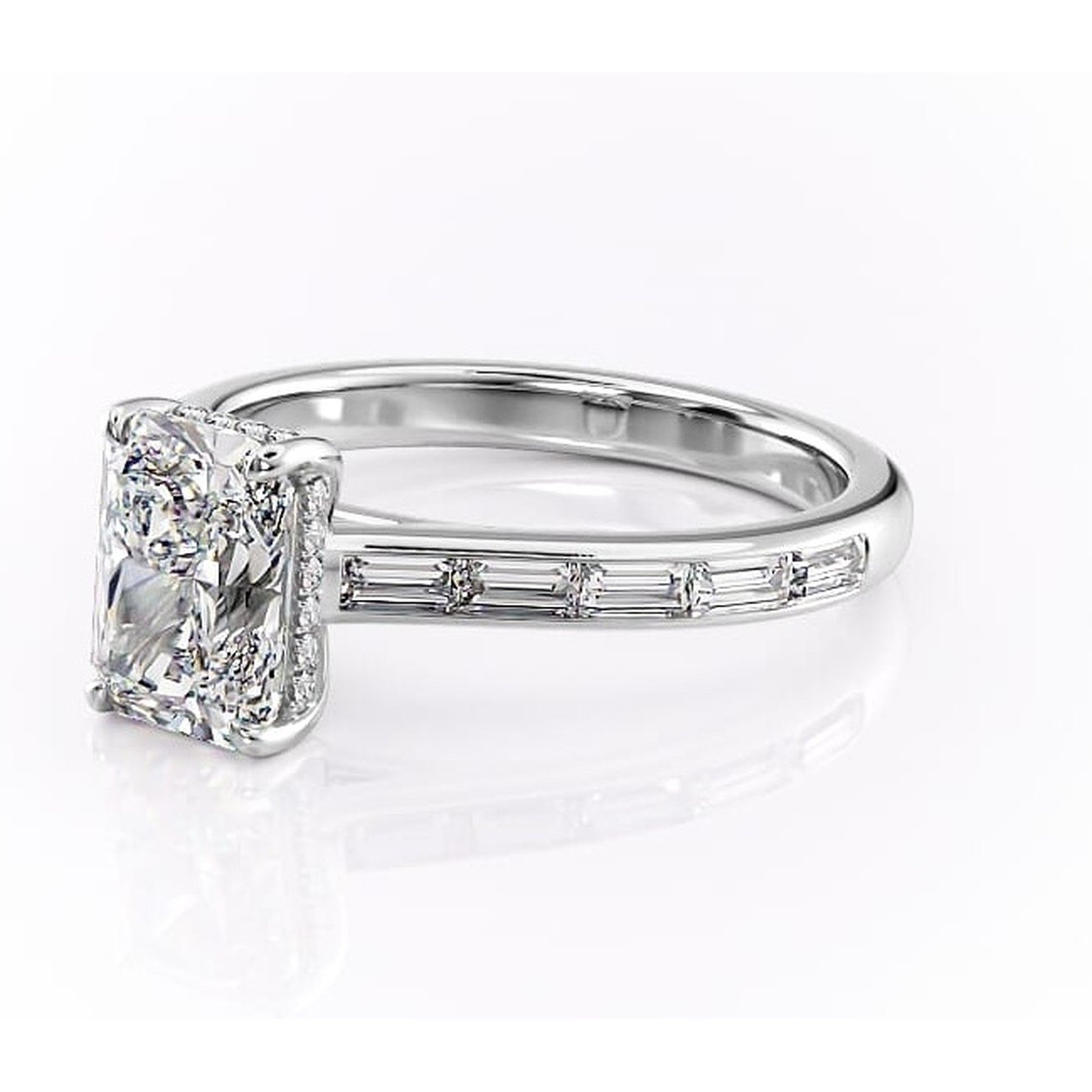Inel de logodnă Catherine din aur Alb 18kt cu moissanite tăietură radiantă – Montură cu canal rafinată pentru profil înalt | Personalizează și configurează gratuit online