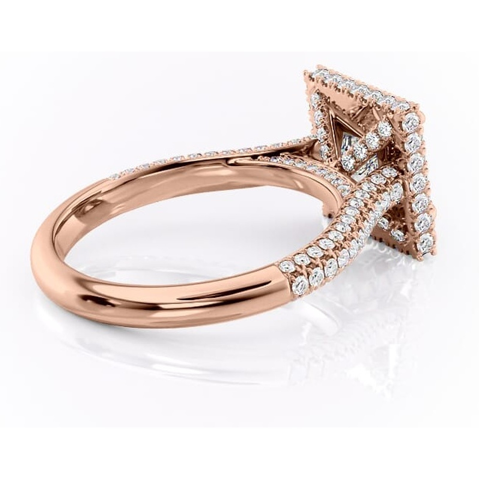 Inel de logodnă Nerina din aur Rose 18kt cu moissanite tăietură princess – Halo rafinată pentru profil înalt | Personalizează și configurează gratuit online