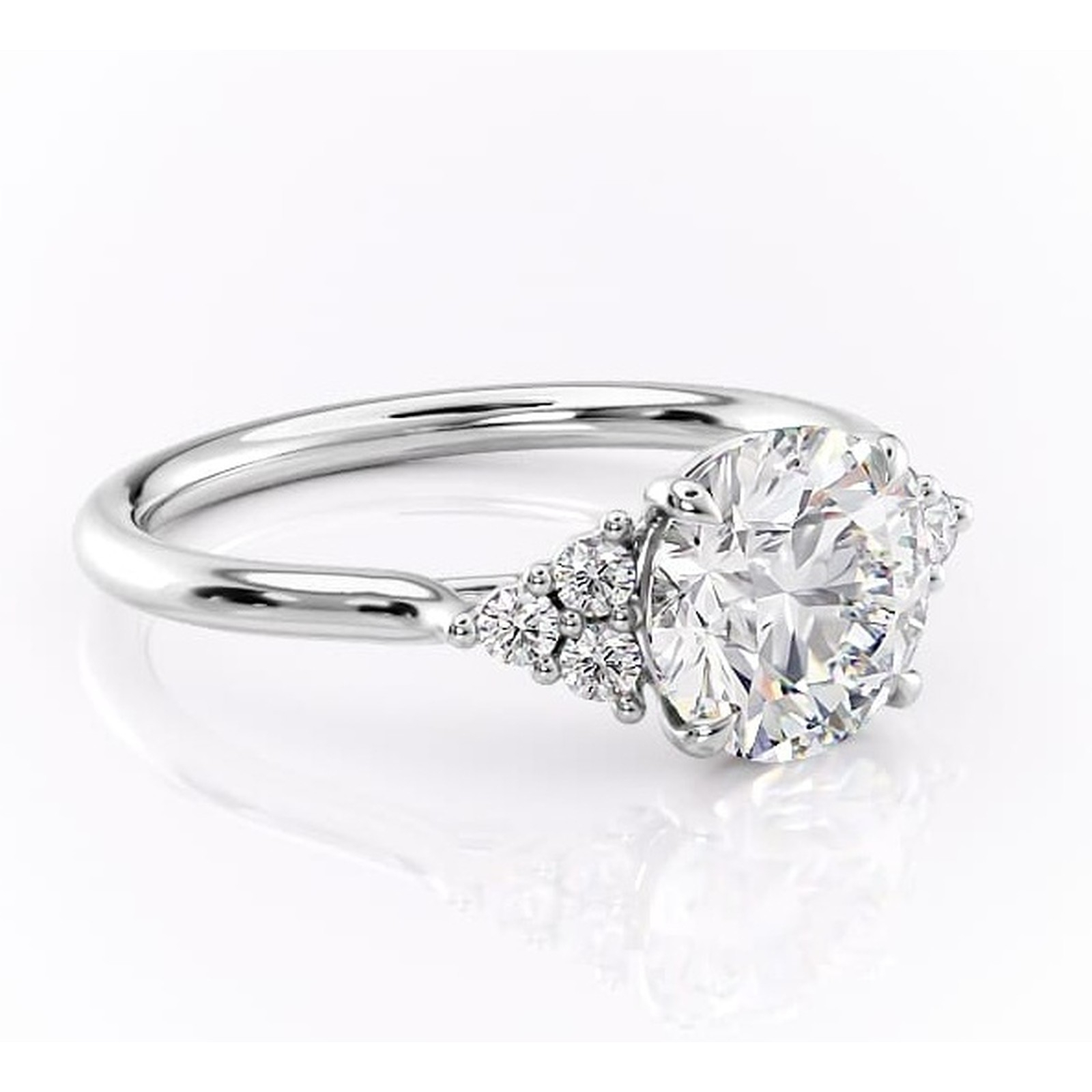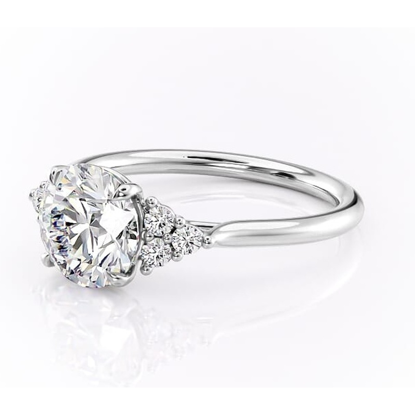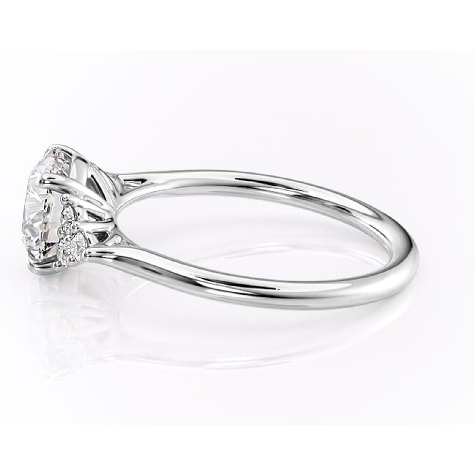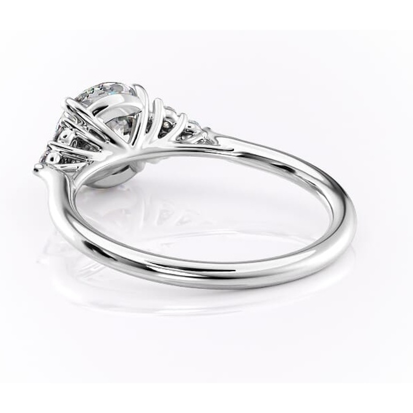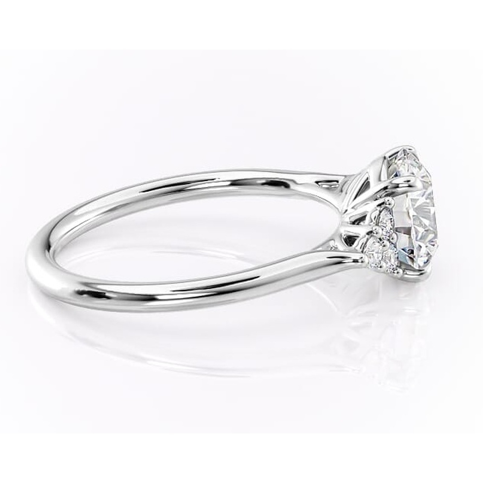 Inel de logodnă Ivylyn din aur Alb 14kt cu moissanite tăietură rotundă – Montură cu trei pietre rafinată pentru profil mediu | Personalizează și configurează gratuit online