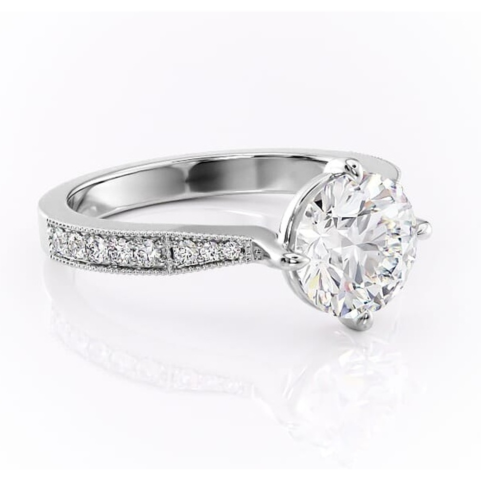 Inel de logodnă Thalia din aur Alb 14kt cu moissanite tăietură rotundă – Montură pavé rafinată pentru profil mediu | Personalizează și configurează gratuit online