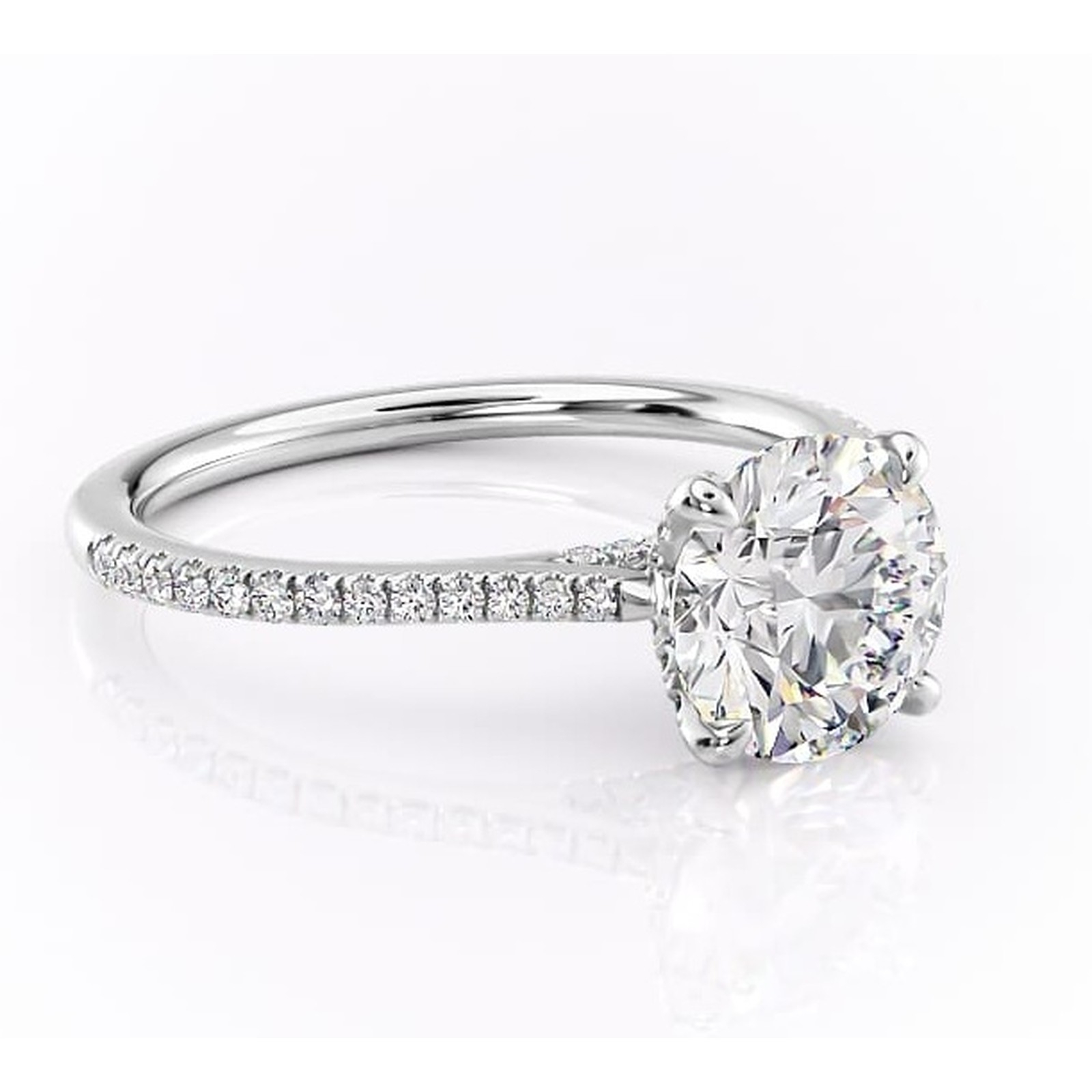Inel de logodnă Tove din aur Alb 14kt cu moissanite tăietură rotundă – Montură pavé rafinată pentru profil înalt | Personalizează și configurează gratuit online