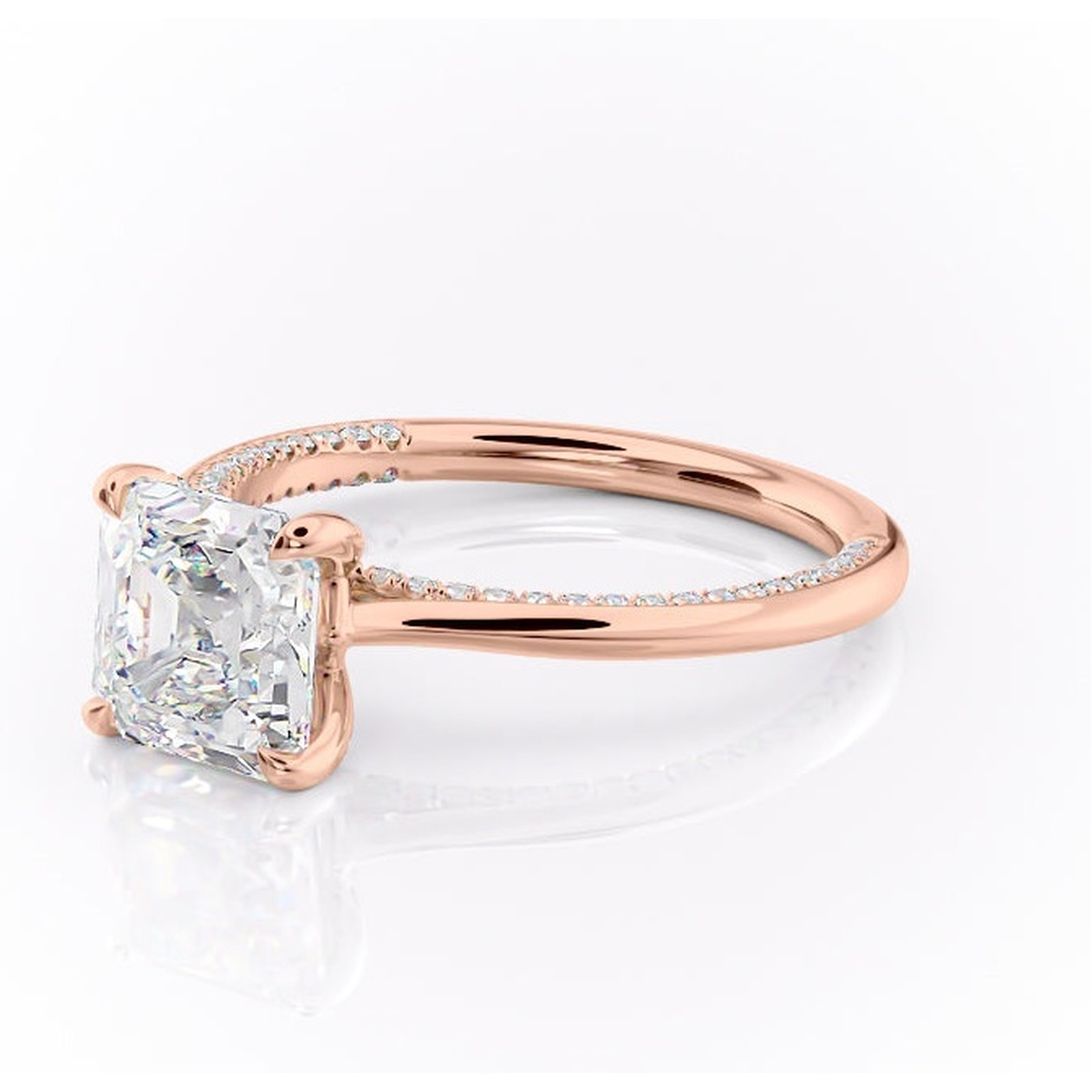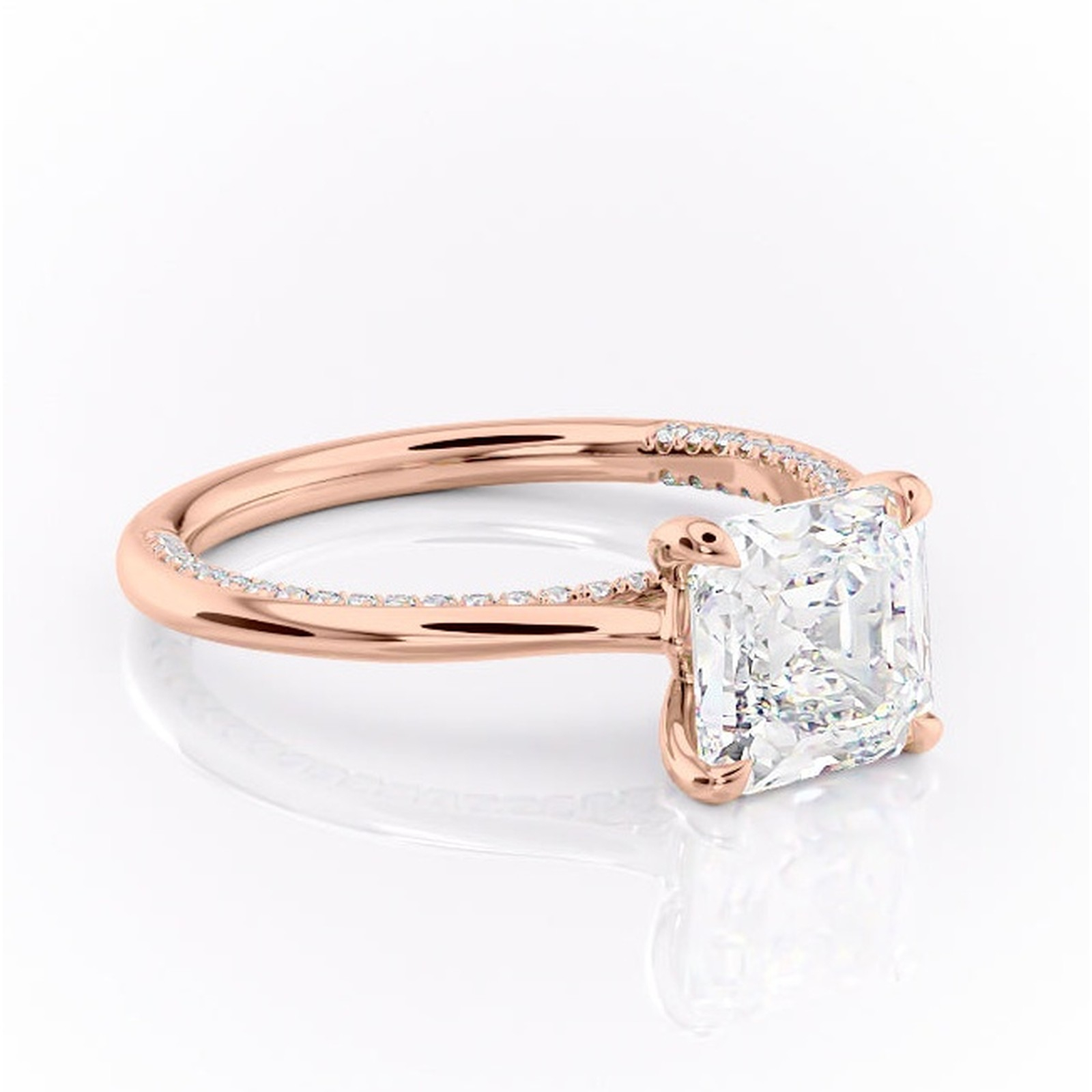 Inel de logodnă Mila din aur Rose 14kt cu moissanite tăietură asscher – Solitar rafinată pentru profil înalt | Personalizează și configurează gratuit online