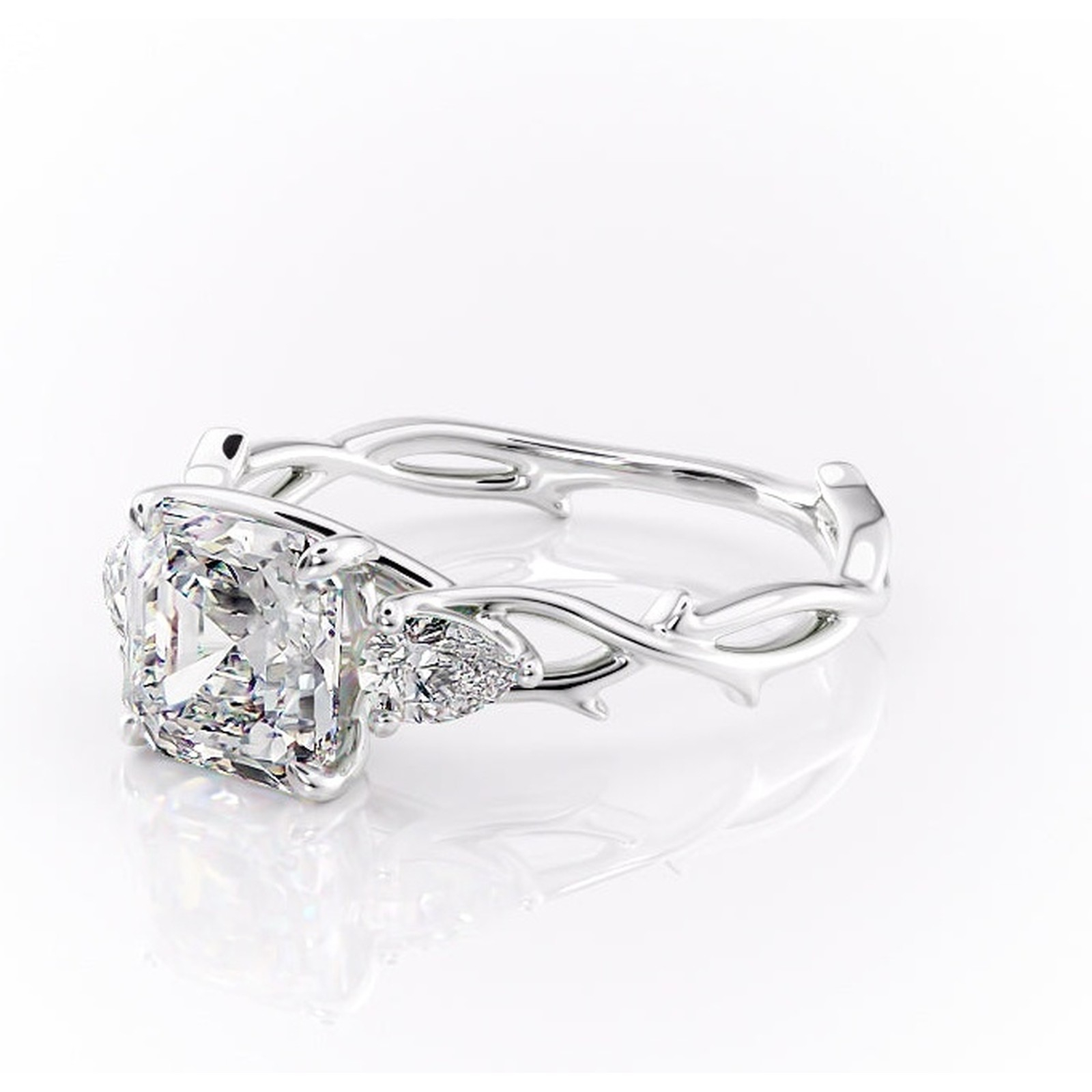 Inel de logodnă Elira din aur Alb 18kt cu moissanite tăietură asscher – Montură cu trei pietre rafinată pentru profil mediu | Personalizează și configurează gratuit online