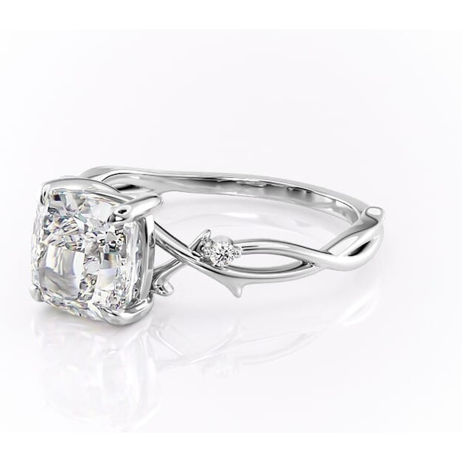 Inel de logodnă Thalina din aur Alb 14kt cu moissanite tăietură pernă – Solitar rafinată pentru profil mediu | Personalizează și configurează gratuit online