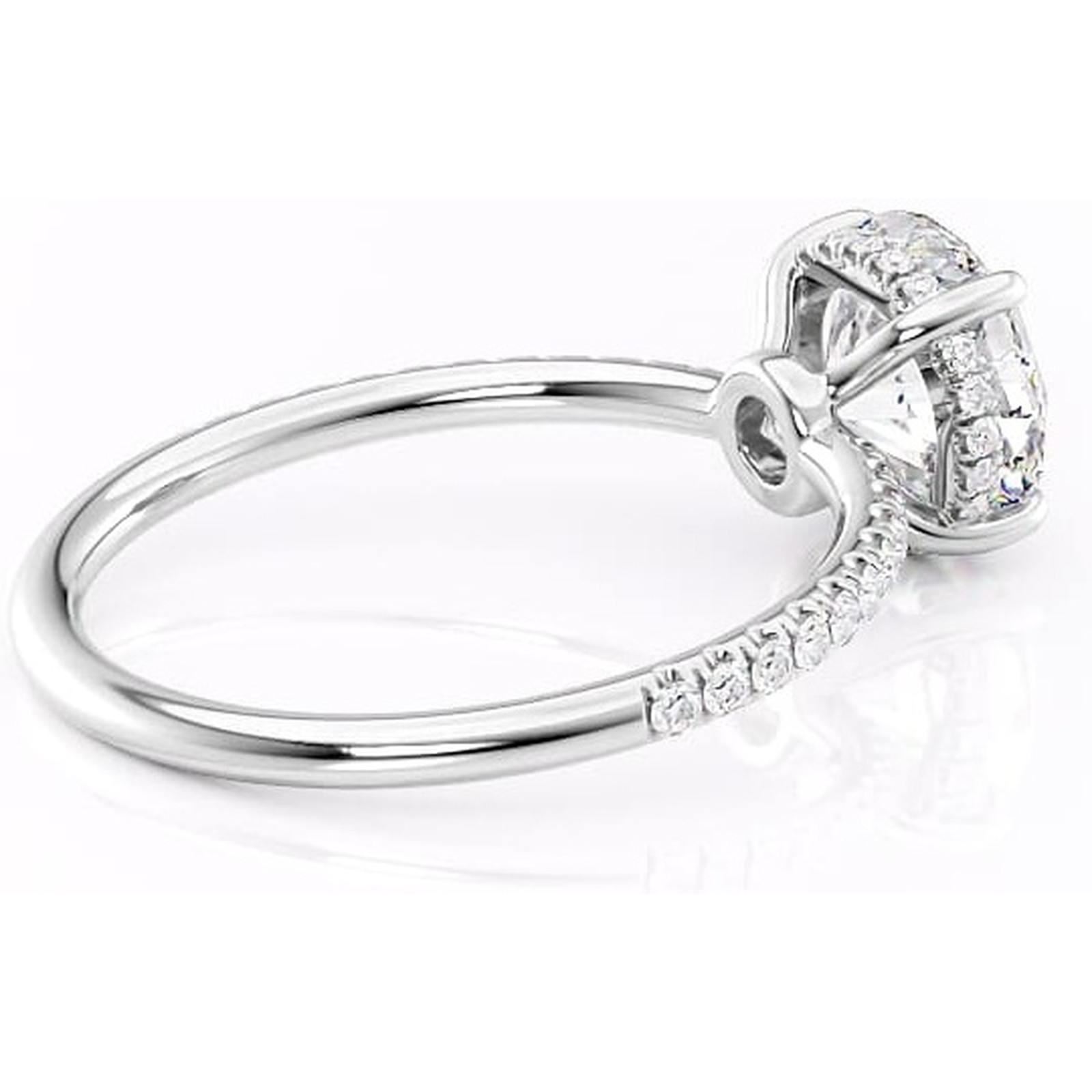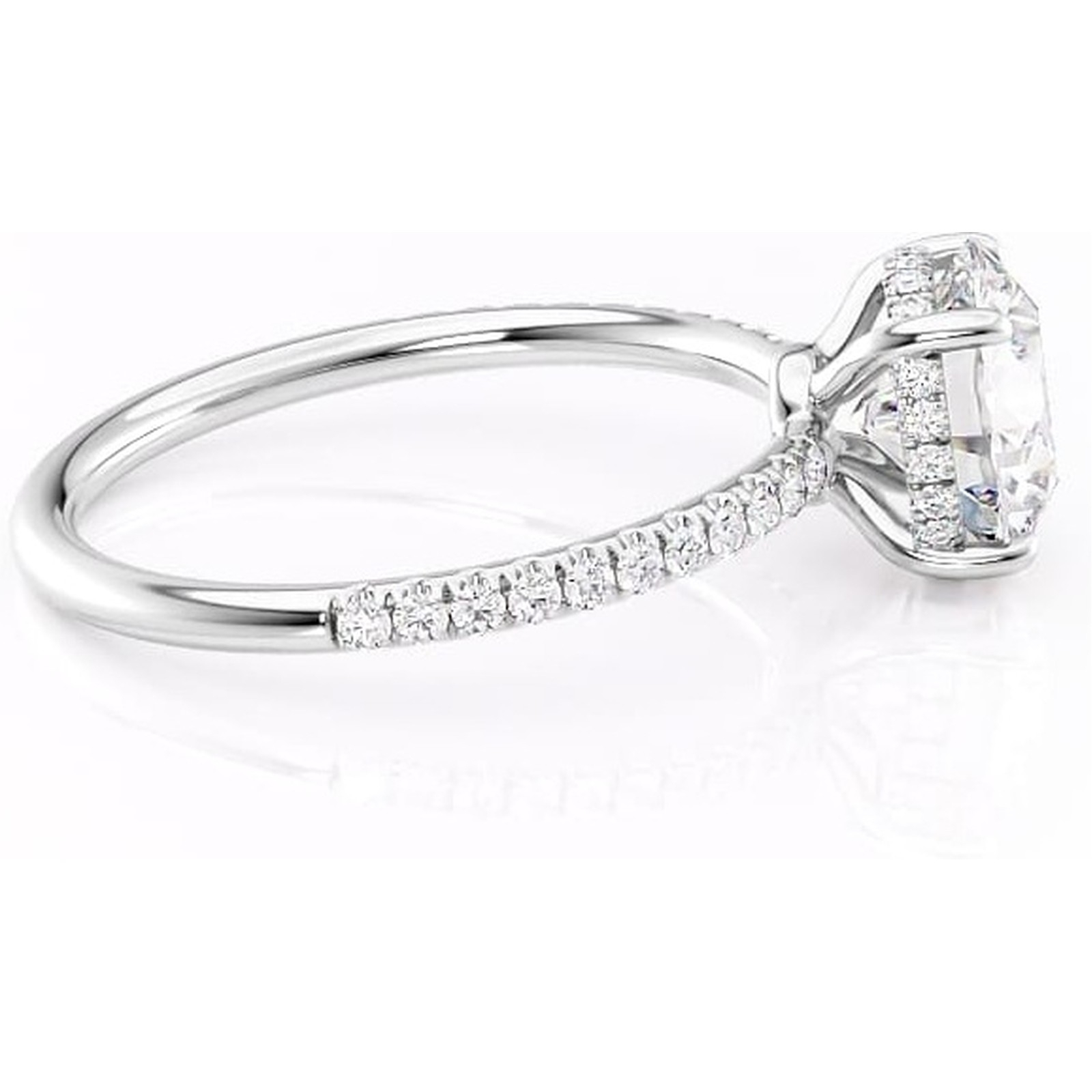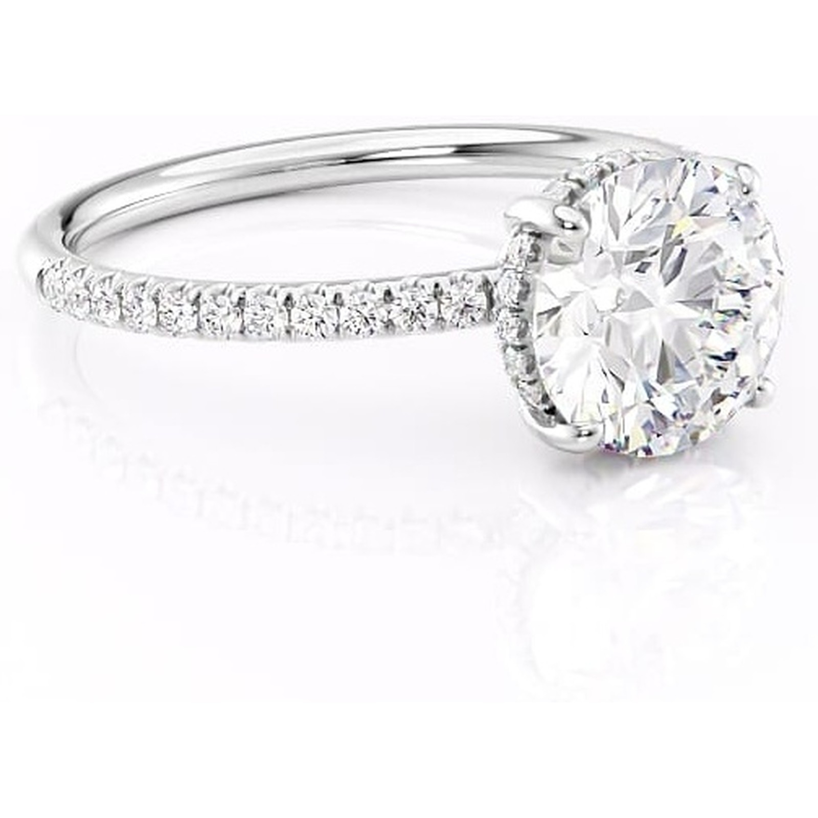 Inel de logodnă Brielle din aur Alb 14kt cu moissanite tăietură rotundă – Montură Kamellie joasă rafinată pentru profil jos | Personalizează și configurează gratuit online