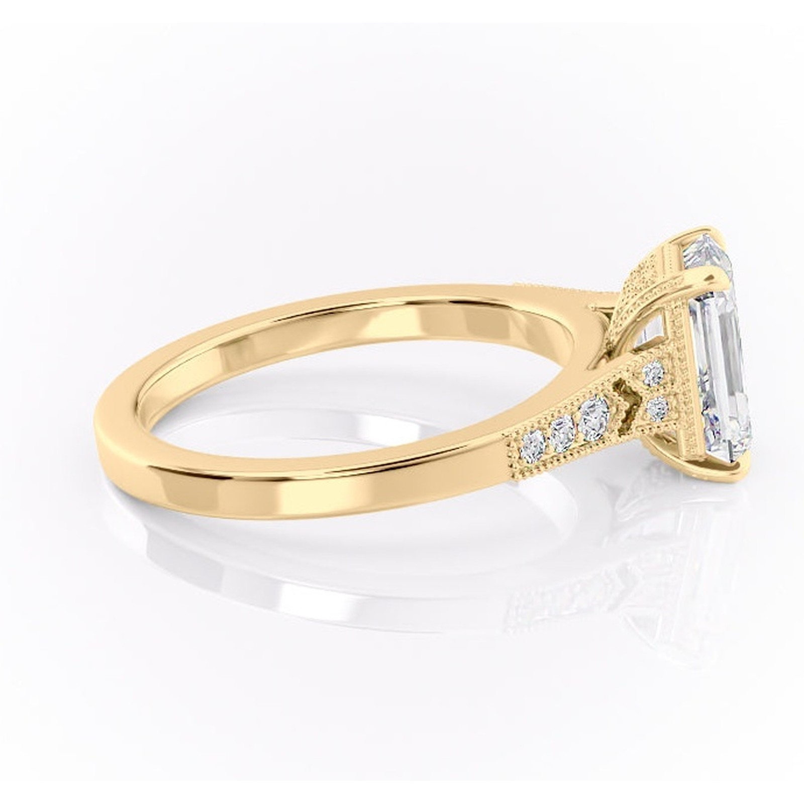 Inel de logodnă Caelia din aur Galben 14kt cu moissanite tăietură smarald – Pietre laterale rafinată pentru profil înalt | Personalizează și configurează gratuit online