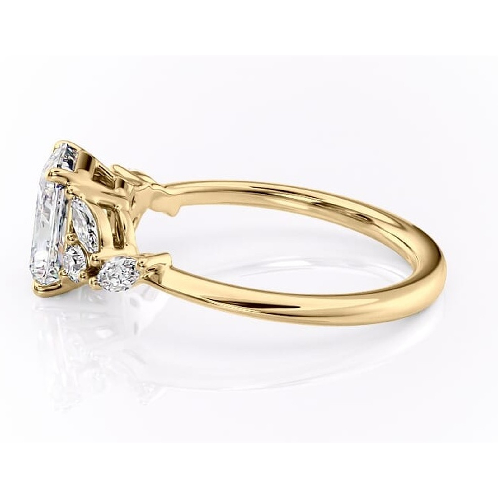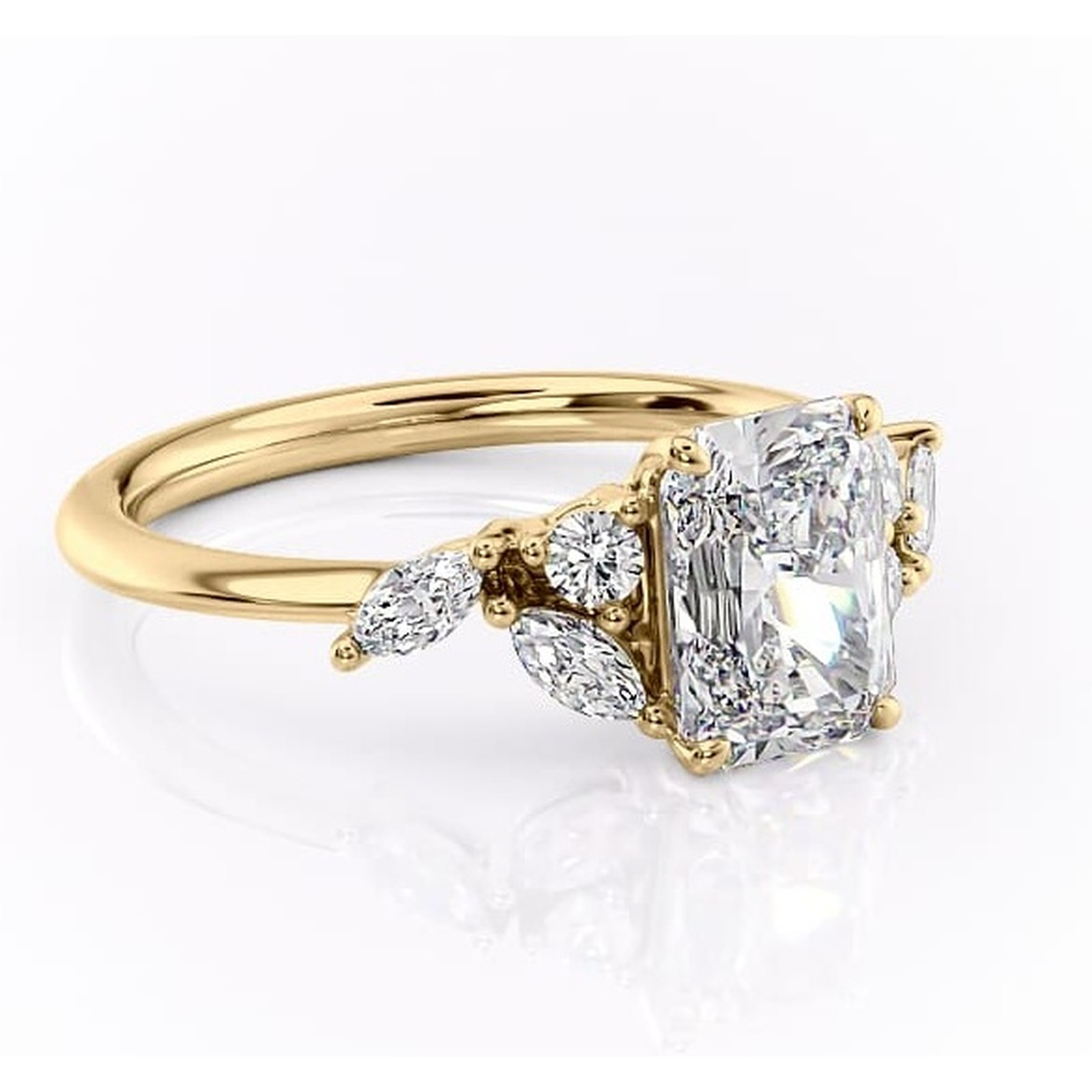 Inel de logodnă Emmeline din aur Galben 14kt cu moissanite tăietură radiantă – Pietre laterale rafinată pentru profil mediu | Personalizează și configurează gratuit online
