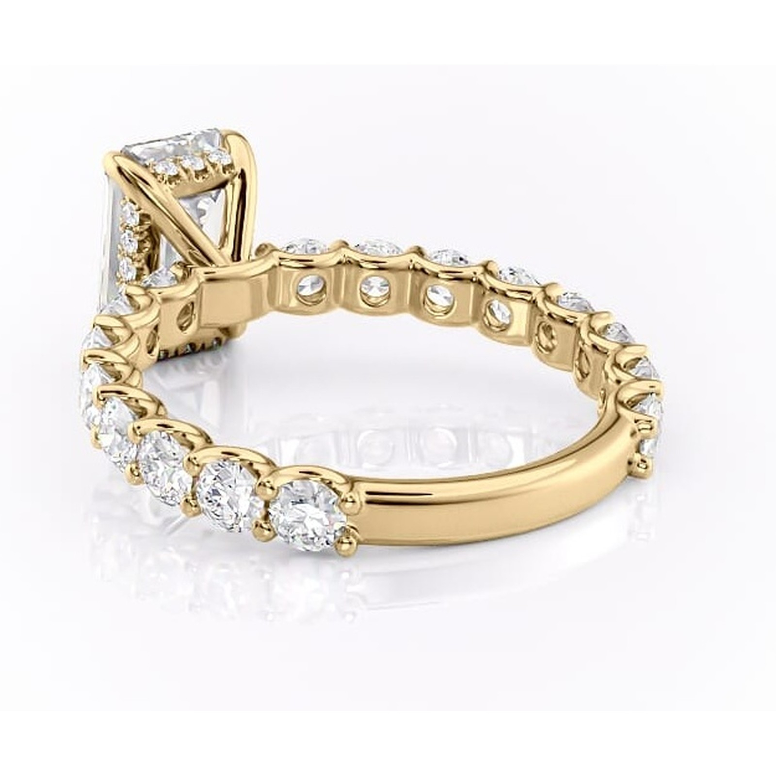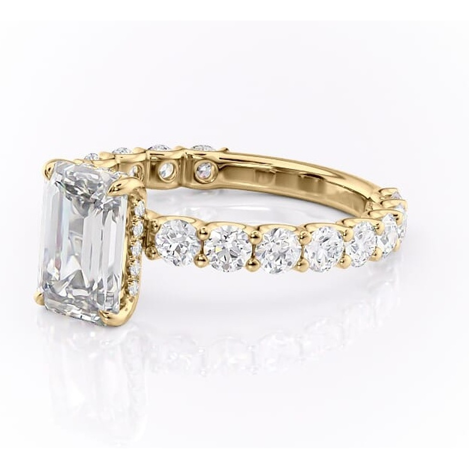 Inel de logodnă Floralie din aur Galben 18kt cu moissanite tăietură smarald – Pietre laterale excepțional | Personalizează și configurează gratuit online