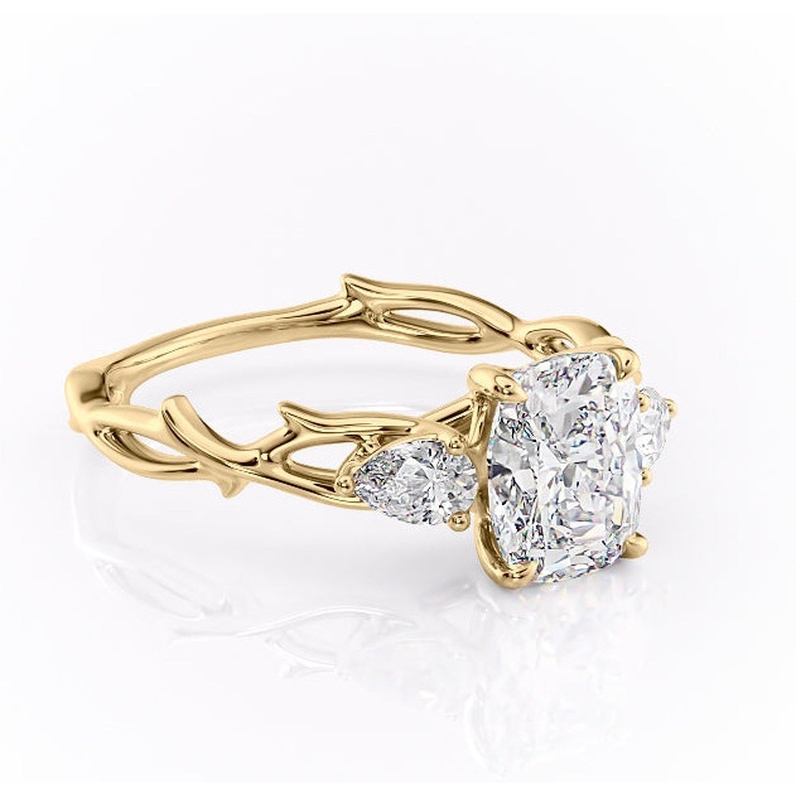Inel de logodnă Elira din aur Galben 14kt cu moissanite tăietură asscher – Montură cu trei pietre rafinată pentru profil mediu | Personalizează și configurează gratuit online