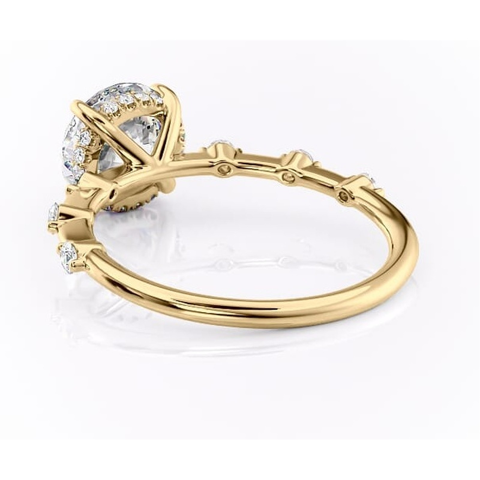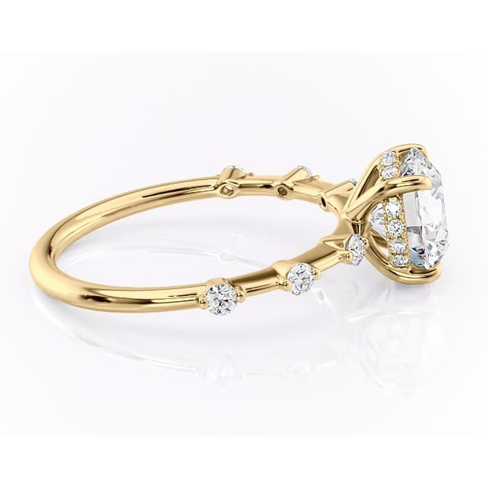 Inel de logodnă Lilya din aur Galben 14kt cu moissanite tăietură rotundă – Pietre laterale rafinată pentru profil mediu | Personalizează și configurează gratuit online