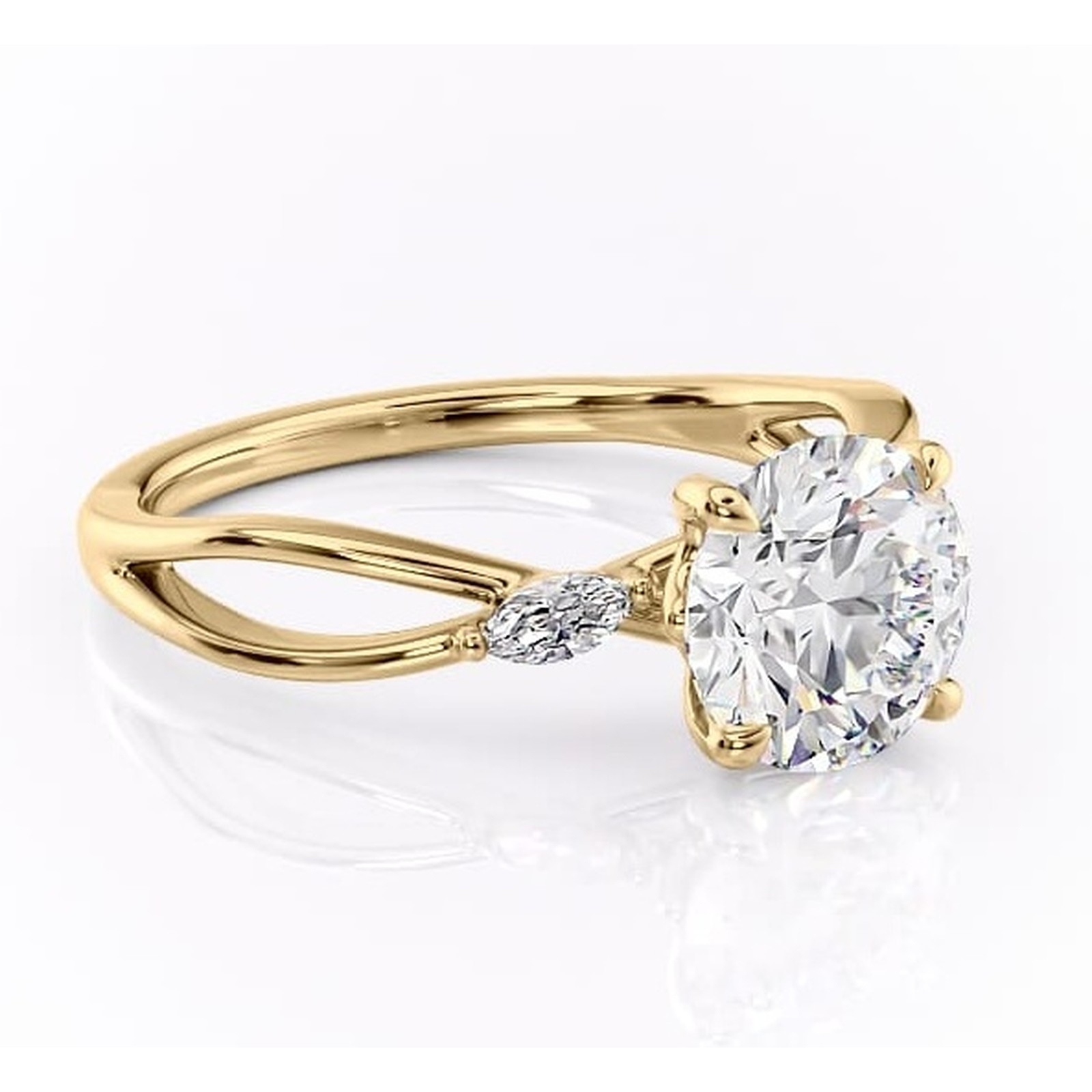 Inel de logodnă Mirabel din aur Galben 14kt cu moissanite tăietură rotundă – Pietre laterale rafinată pentru profil mediu | Personalizează și configurează gratuit online