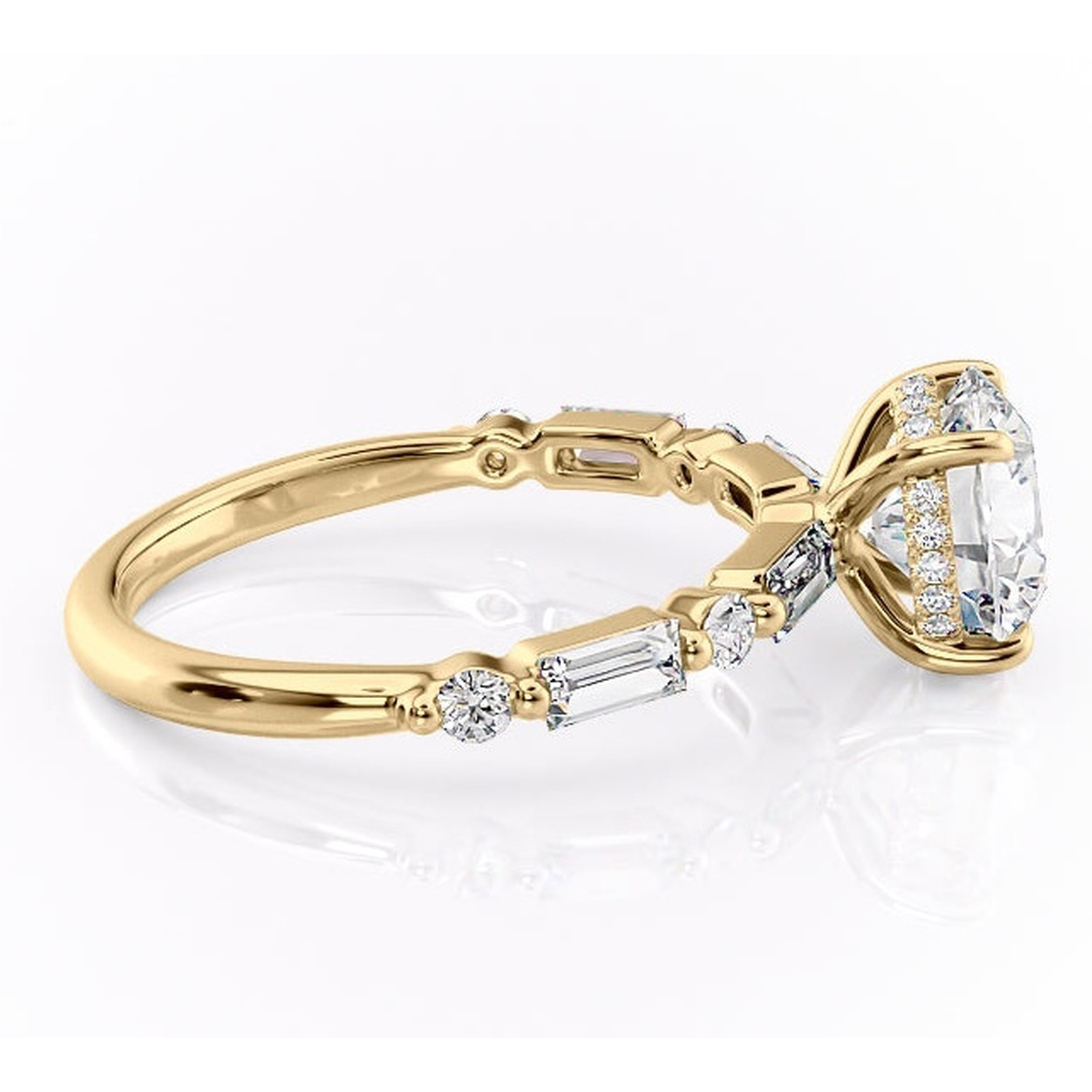 Inel de logodnă Moonstone din aur Galben 14kt cu moissanite tăietură rotundă – Pietre laterale rafinată pentru profil înalt | Personalizează și configurează gratuit online
