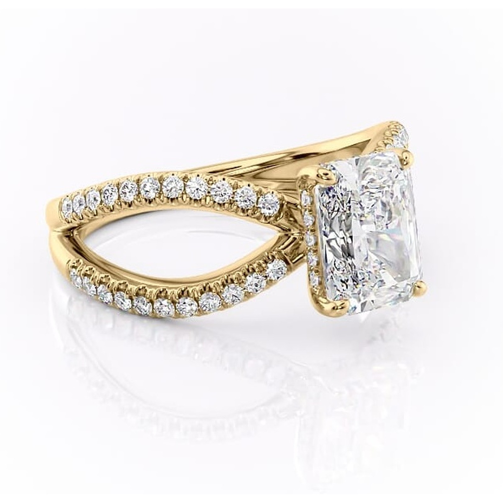 Inel de logodnă Acacia din aur Galben 14kt cu moissanite tăietură radiantă – Montură pavé rafinată pentru profil înalt | Personalizează și configurează gratuit online