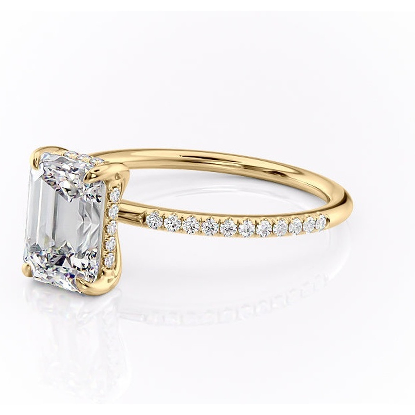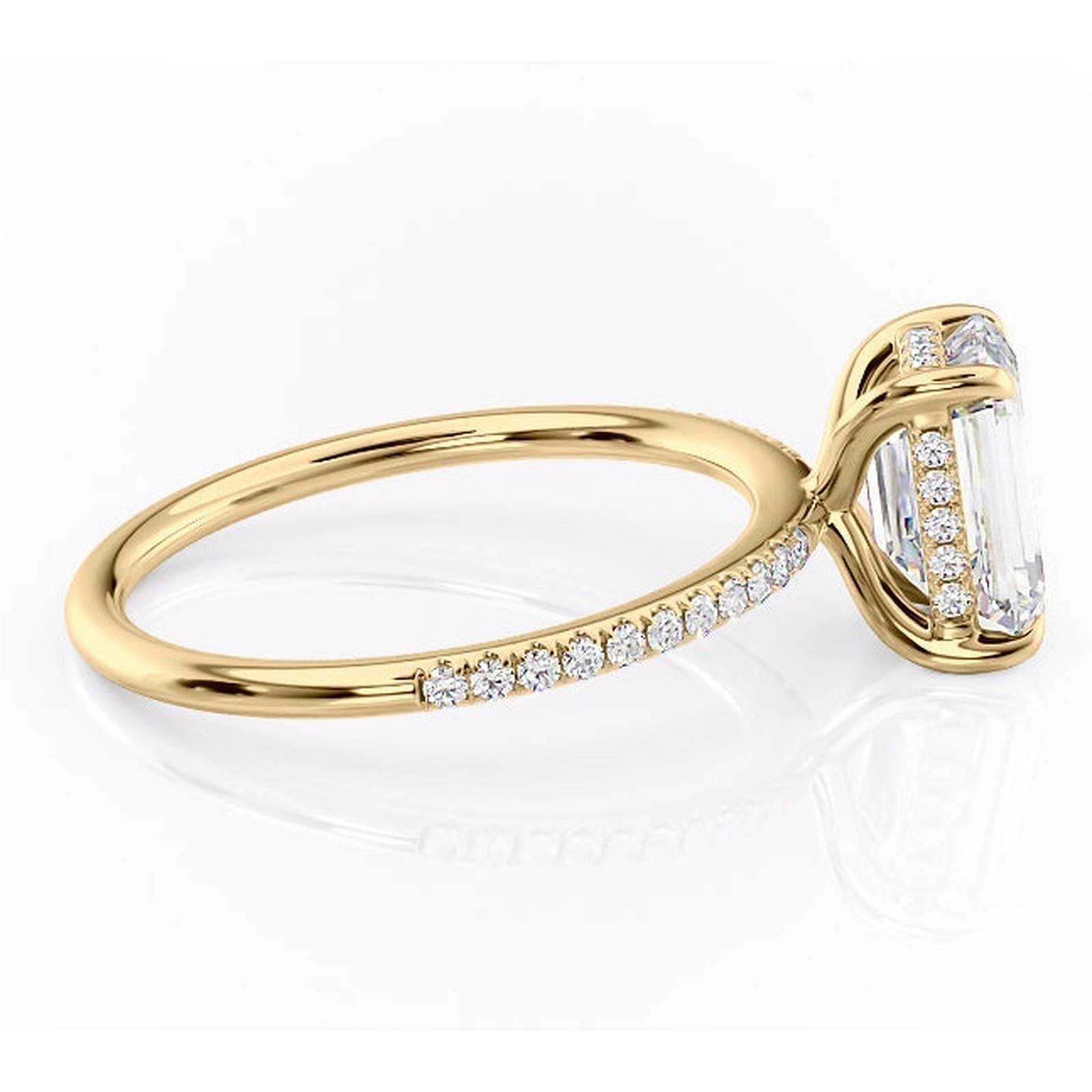 Inel de logodnă Isadora din aur Galben 14kt cu moissanite tăietură smarald – Montură pavé rafinată pentru profil înalt | Personalizează și configurează gratuit online