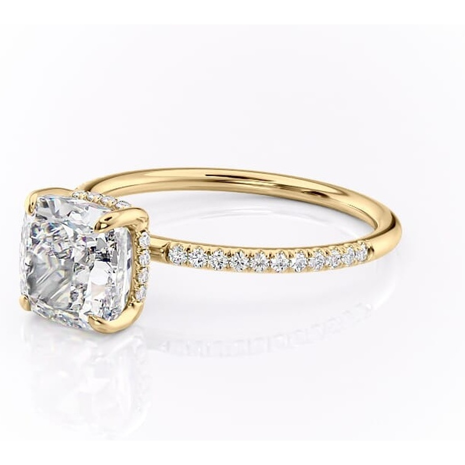 Inel de logodnă Isadora din aur Galben 18kt cu moissanite tăietură pernă – Montură pavé rafinată pentru profil înalt | Personalizează și configurează gratuit online
