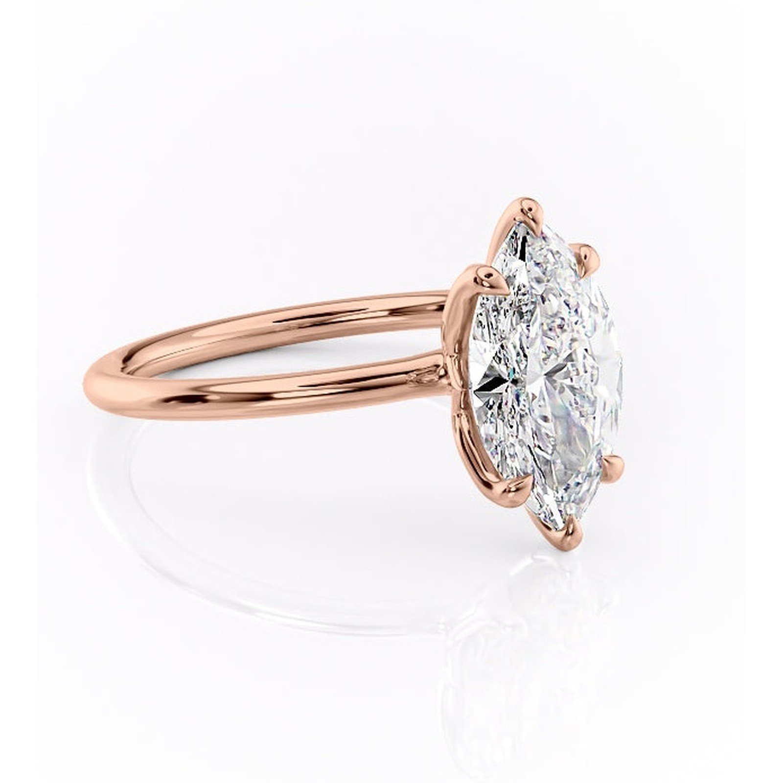 Inel de logodnă Zephyra din aur Rose 14kt cu moissanite tăietură marquise – Solitar rafinată pentru profil înalt | Personalizează și configurează gratuit online
