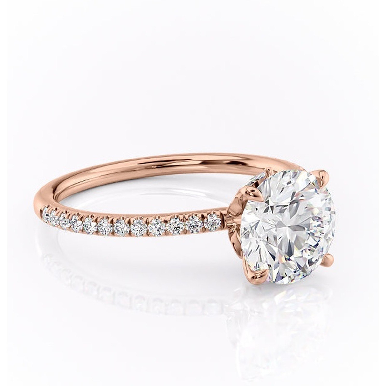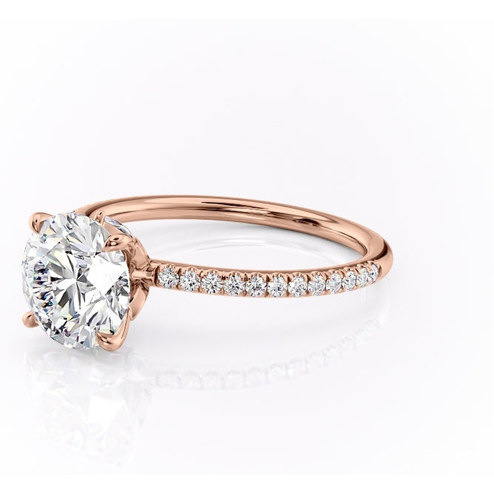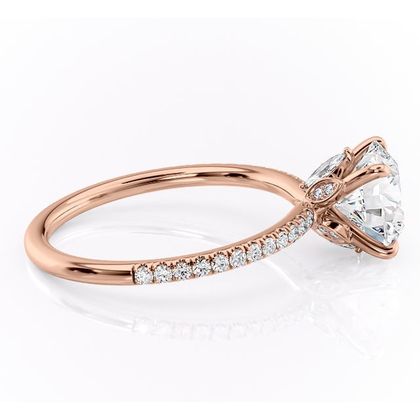 Inel de logodnă Onyxia din aur Rose 14kt cu moissanite tăietură rotundă – Montură pavé rafinată pentru profil înalt | Personalizează și configurează gratuit online