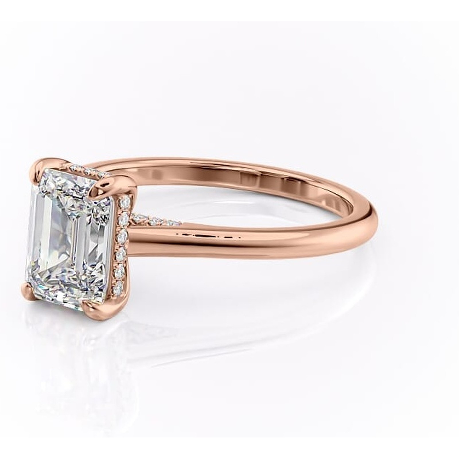 Inel de logodnă Aria din aur Rose 14kt cu moissanite tăietură smarald – Solitar rafinată pentru profil înalt | Personalizează și configurează gratuit online