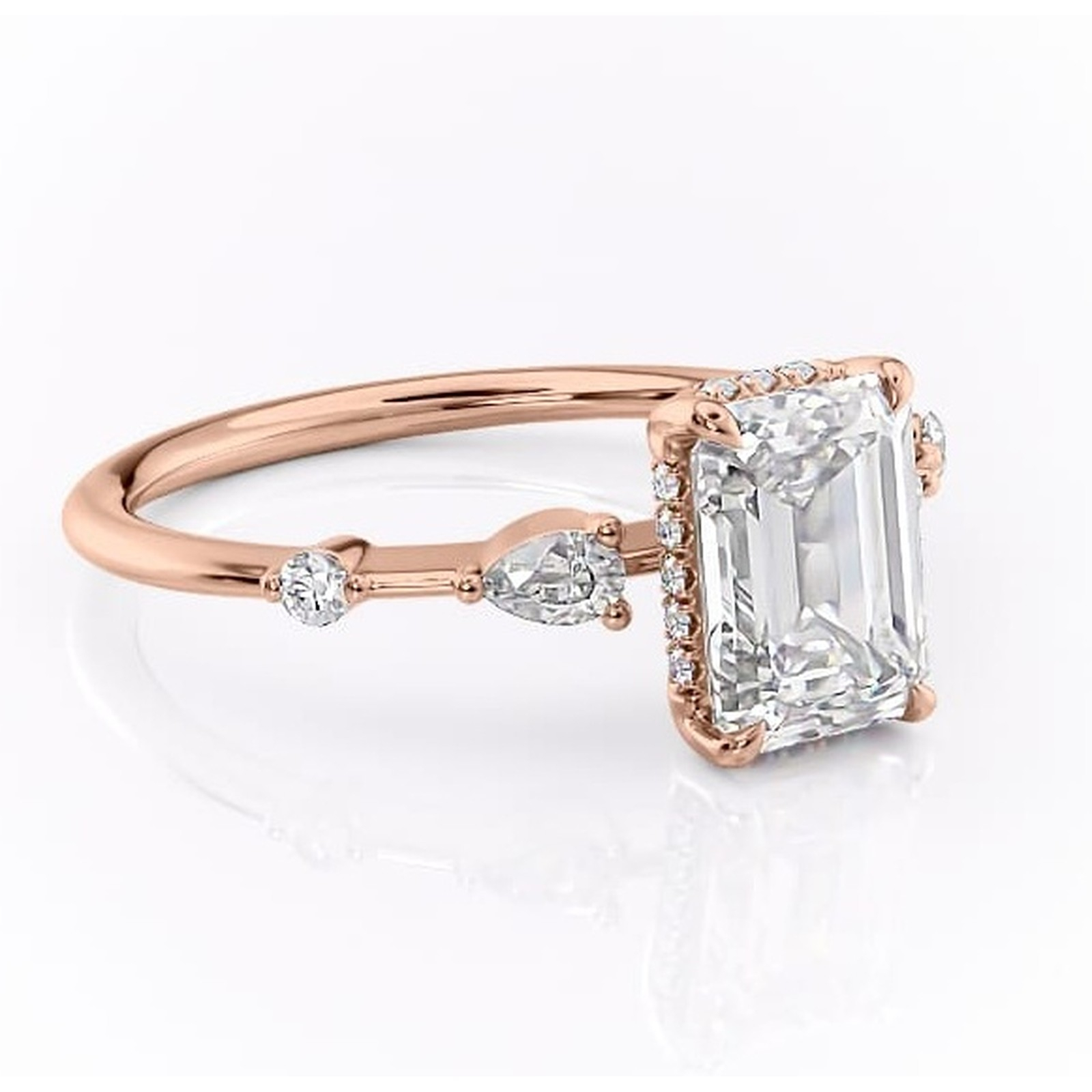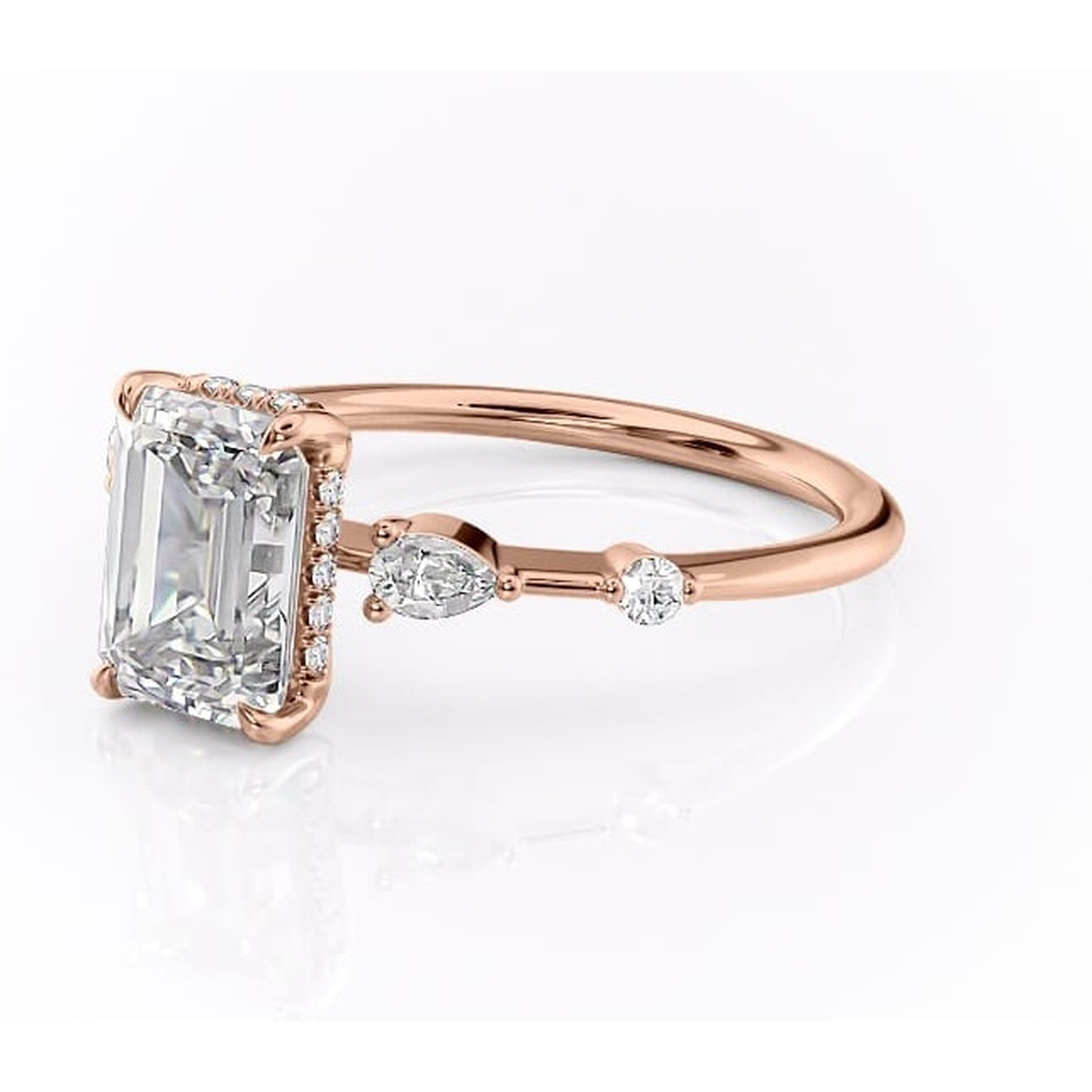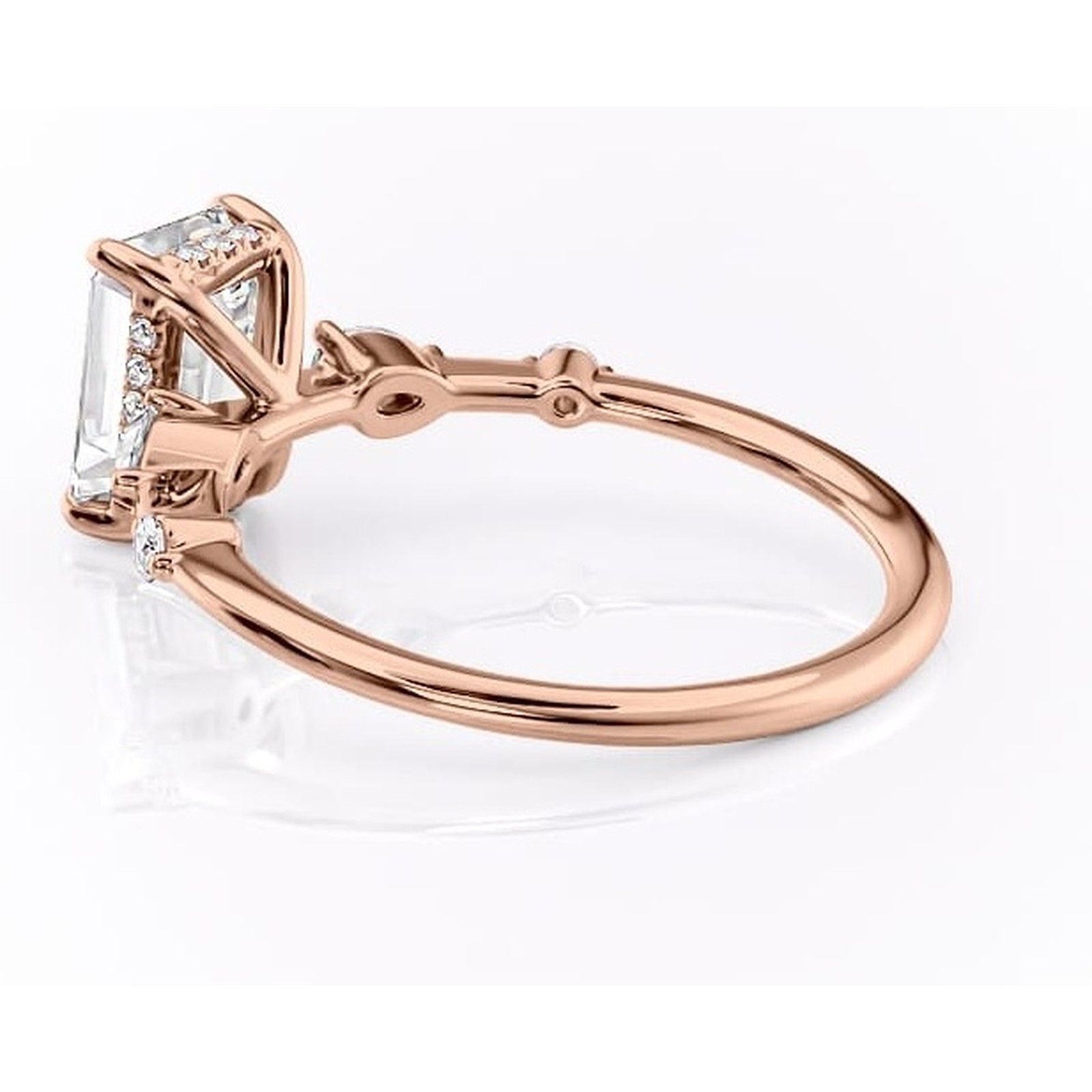 Inel de logodnă Azalea din aur Rose 18kt cu moissanite tăietură smarald – Montură cu trei pietre rafinată pentru profil mediu | Personalizează și configurează gratuit online