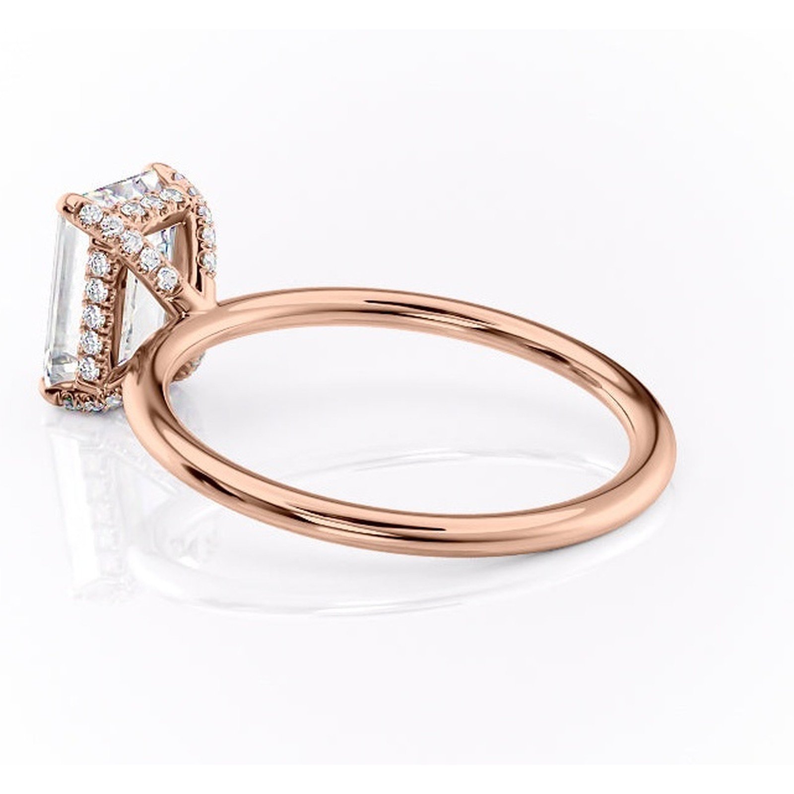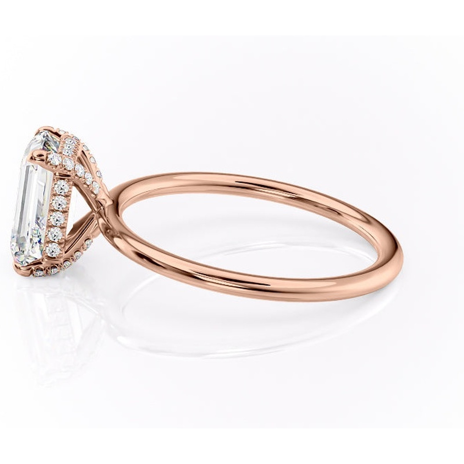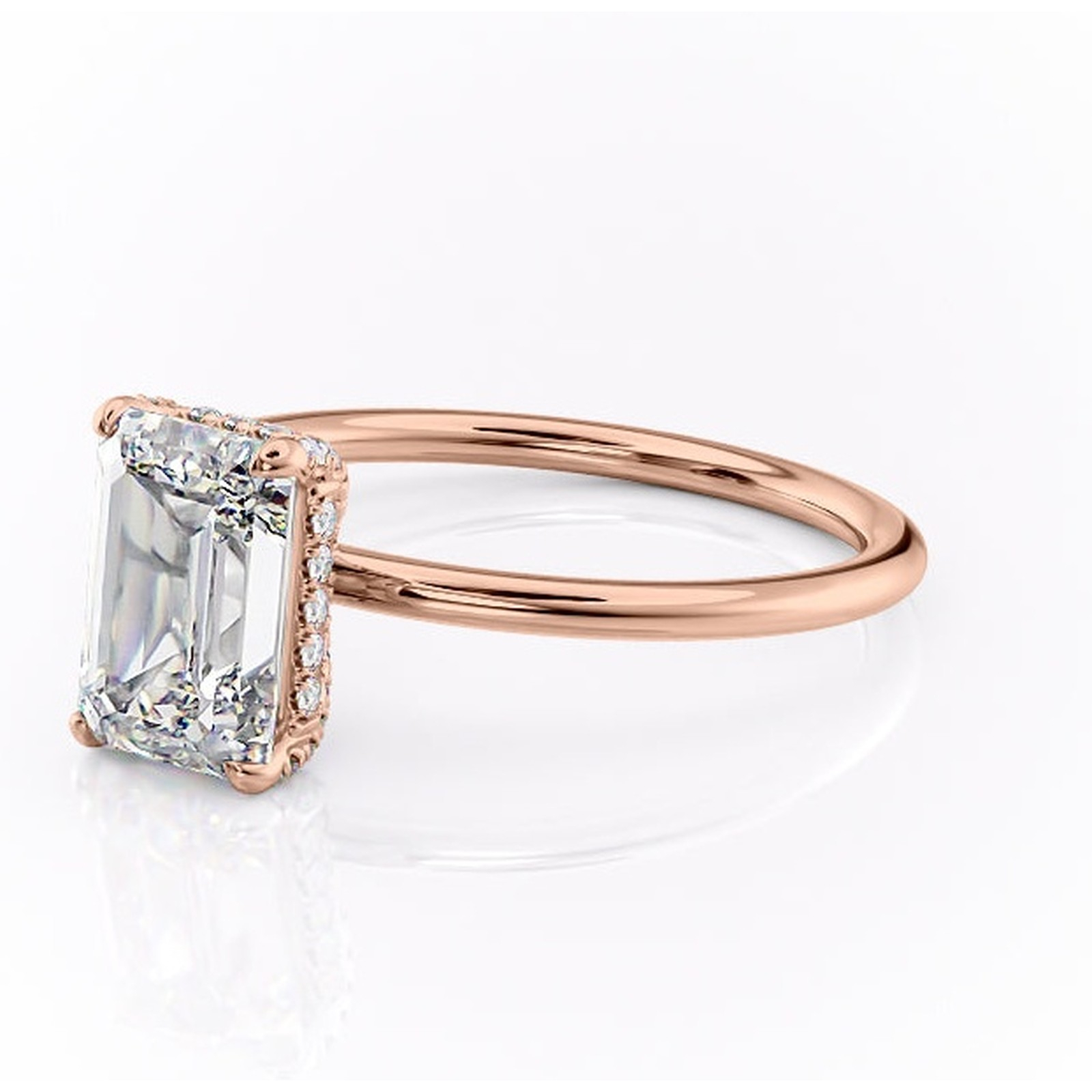 Inel de logodnă Clarabelle din aur Rose 14kt cu moissanite tăietură smarald – Solitar rafinată pentru profil înalt | Personalizează și configurează gratuit online