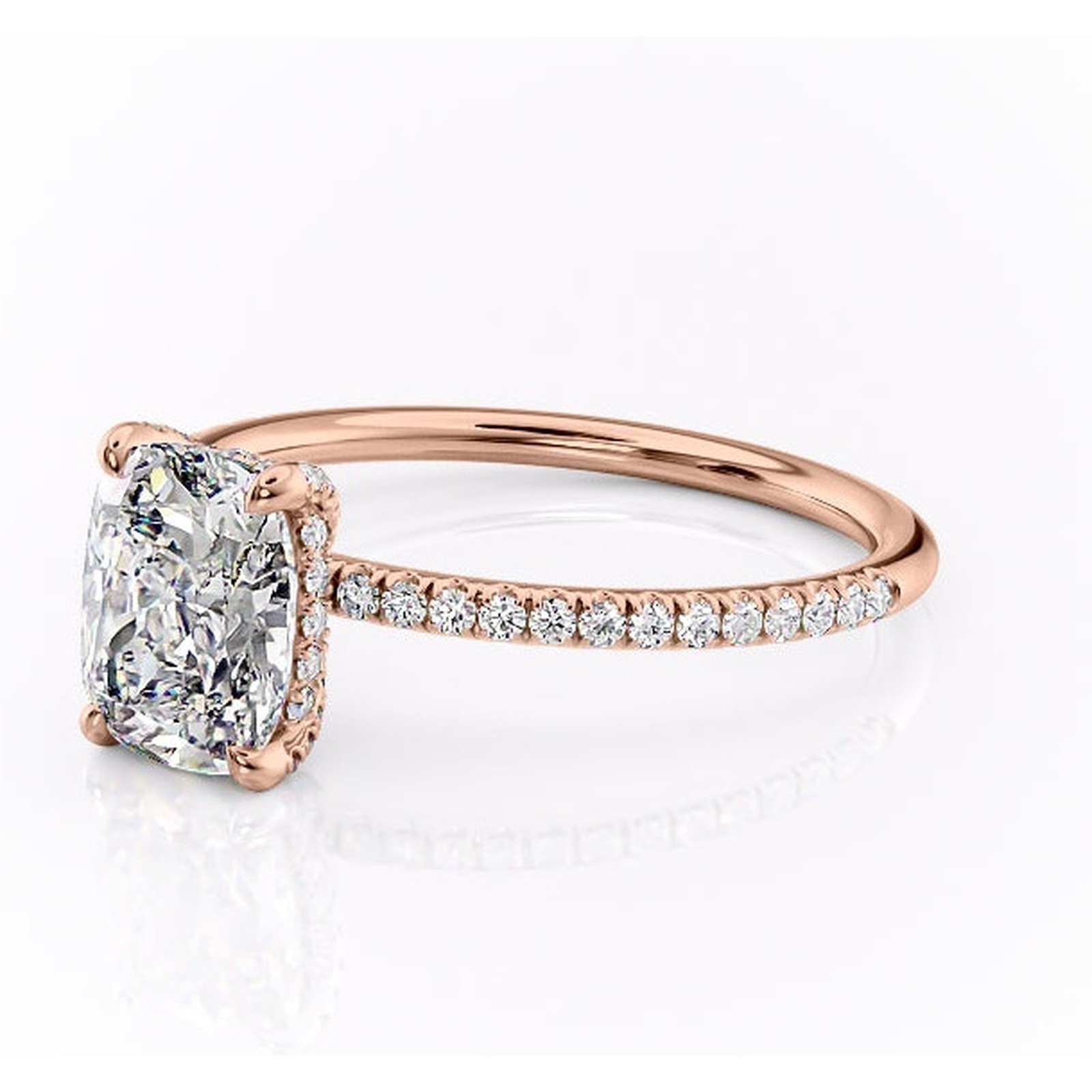 Inel de logodnă Estelle din aur Rose 14kt cu moissanite tăietură pernă – Montură pavé rafinată pentru profil înalt | Personalizează și configurează gratuit online