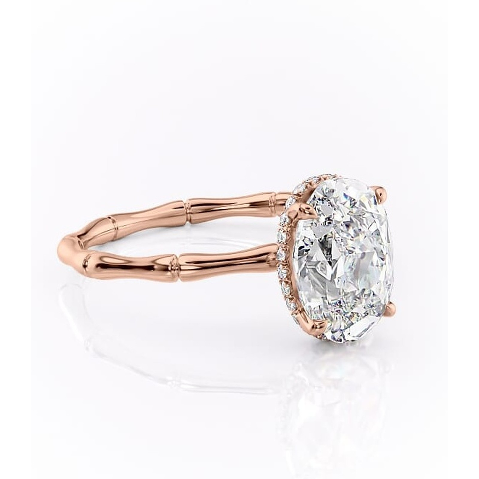 Inel de logodnă Poppy din aur Rose 14kt cu moissanite tăietură ovală – Solitar rafinată pentru profil înalt | Personalizează și configurează gratuit online