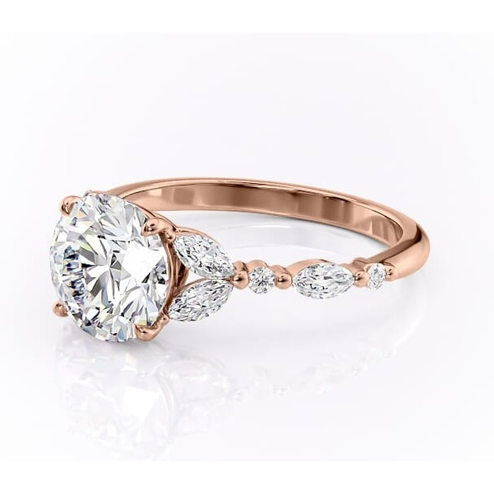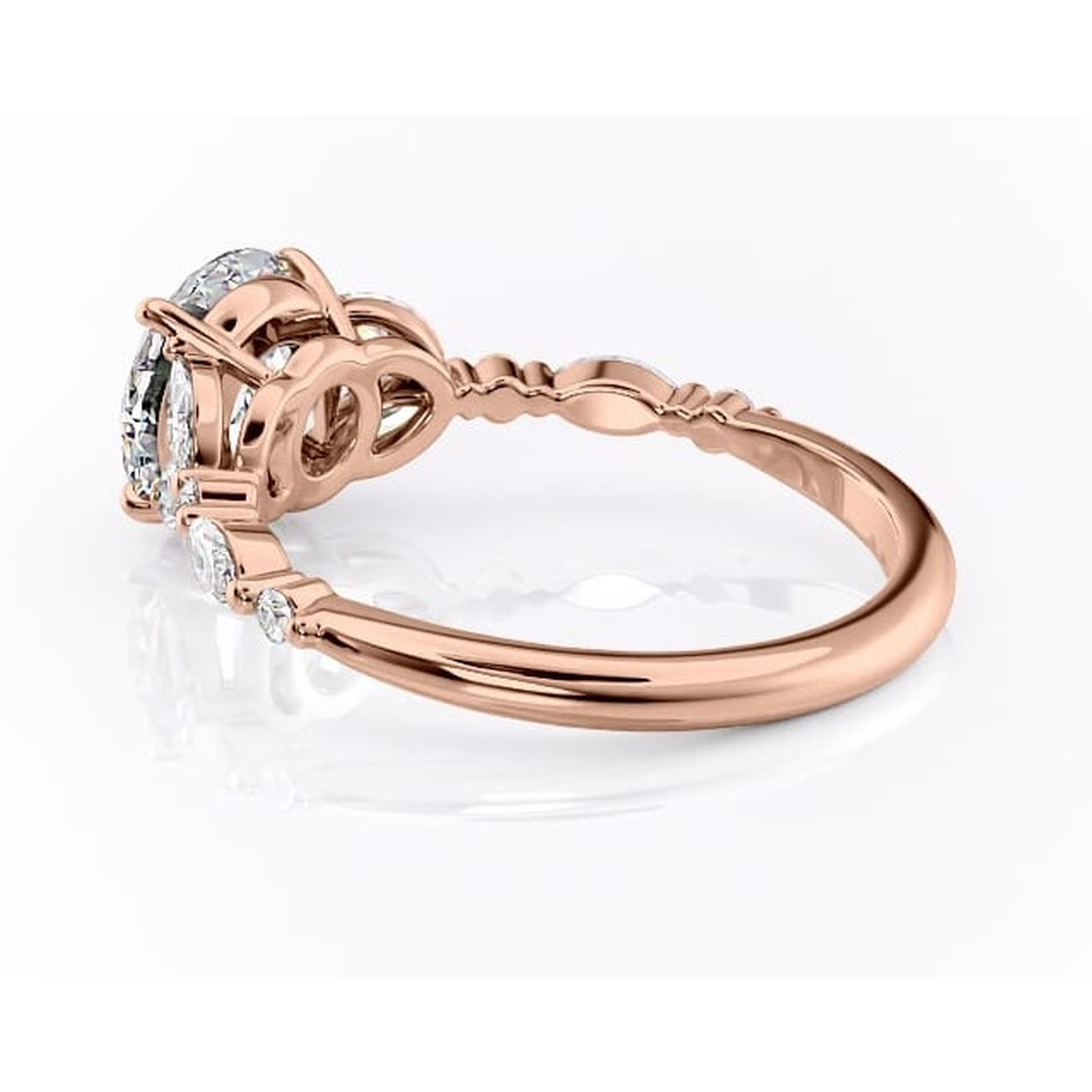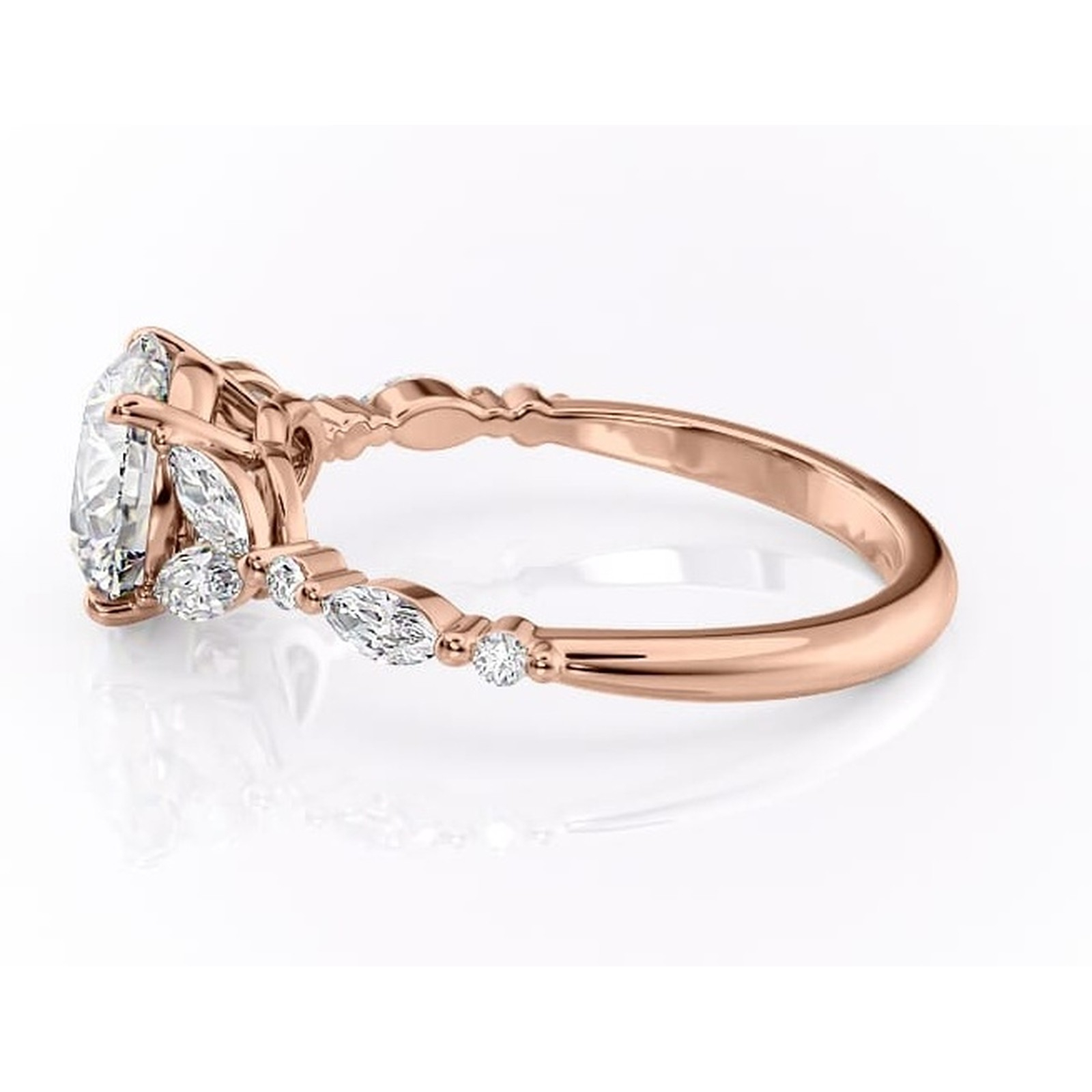 Inel de logodnă Bloom din aur Rose 14kt cu moissanite tăietură rotundă – Montură cu trei pietre rafinată pentru profil mediu | Personalizează și configurează gratuit online