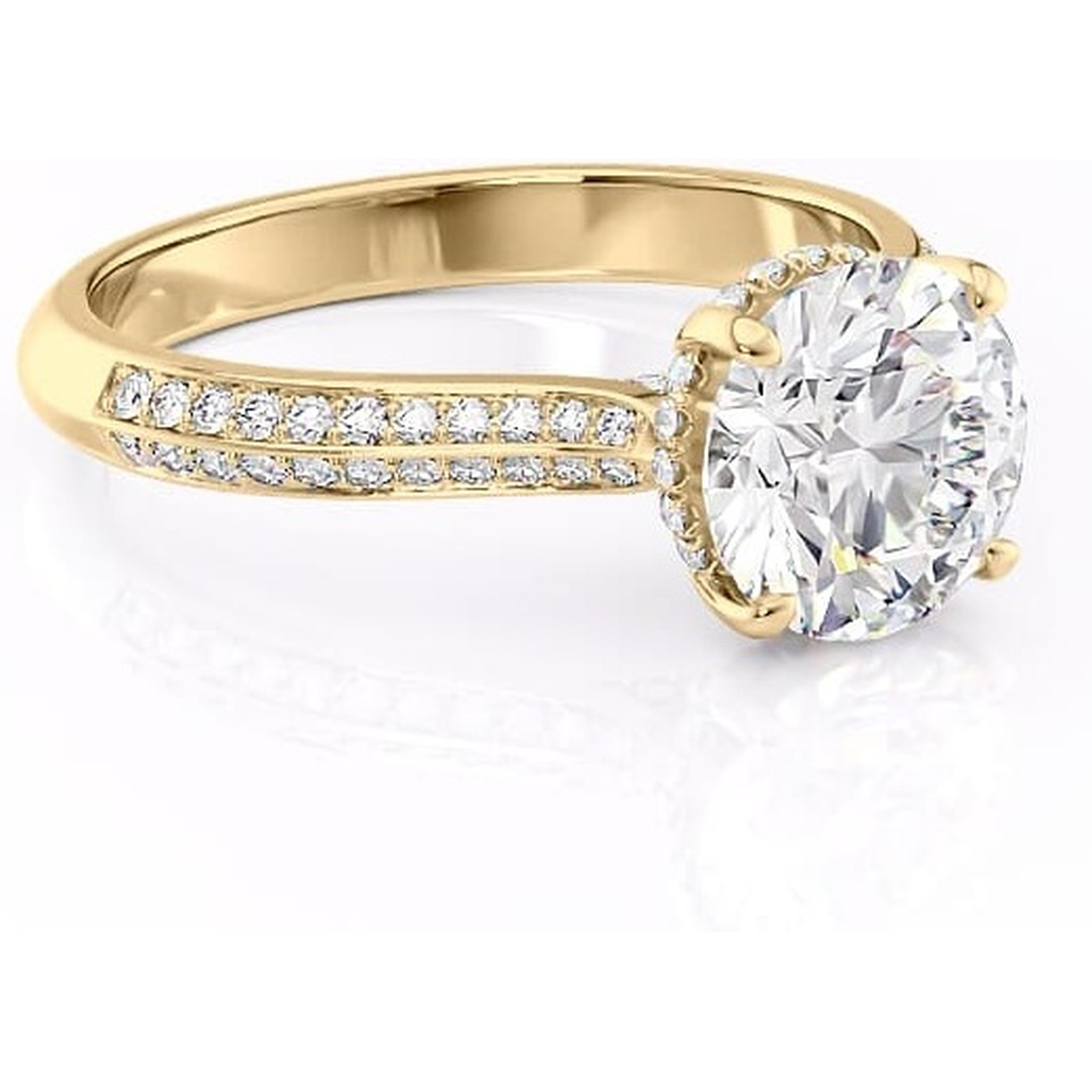 Inel de logodnă Elara din aur Galben 14kt cu moissanite tăietură rotundă – Montură pavé rafinată pentru profil înalt | Personalizează și configurează gratuit online